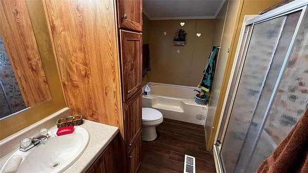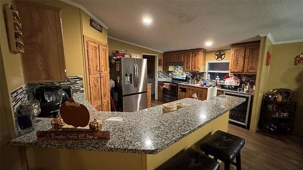 Est $1,871/moCharming 1,664 sq ft double-wide home on 5 acres! This property features a spacious front porch, a cozy screened-in back patio, and a kitchen with beautiful wood cabinetry and granite countertops. There's an area for livestock and an open-sided metal building, perfect for various uses. Ideal for country living with plenty of potential. Motivated seller--bring your offers!