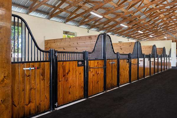 10 acre property features 22 stalls in a center aisle barn, 2 tack rooms, 2 feed rooms, 8 wash racks/grooming bays, fly spray system, WiFi and laundry facilities. The 120 X 240 sand arena is fully irrigated and there is a tractor and drag available.There is a 3 acre grass field for riding as well as 9 paddocks for turn out. The barn has a water filtration system and there are 5 - 50 amp camper hook ups. Gated with security cameras.CAN BE LEASED PER STALL - SMALL GROUPS WELCOME22 Stalls available @ $1200/stall/month for season and $1000/stall /month off season