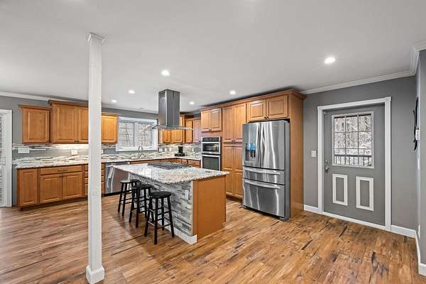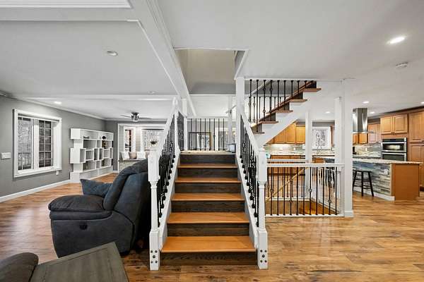 Welcome to this beautifully updated home located in the quiet hills just north of town. As you arrive, you'll notice the wraparound deck, unique rooflines, and peaceful setting that give the home great curb appeal and privacy. Inside, the home has been fully remodeled and offers three bedrooms, three bathrooms, plus a large bonus room above the garage that can be used as a fourth bedroom, office, or flex space. The main level features an open layout with the kitchen, dining area, and living room flowing together, along with a powder room, laundry area, and a spacious two-car garage. Upstairs, you'll find three bedrooms, two full bathrooms, another laundry area, and the bonus room, providing plenty of space and flexibility. The lower level adds even more usable space with a large room ideal for a media area or den, as well as a separate garage perfect for storing snowmachines, lawn equipment, or other gear. Located just north of town, this home offers an easy commute to both Fairbanks and the surrounding work areas. With its thoughtful layout, multiple living spaces, and private setting, this home is a great opportunity to enjoy comfortable Alaskan living.