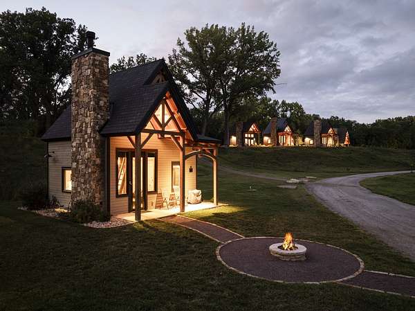 Set on approximately 213 acres of scenic lakes and mature timber in Knox County, just moments from the Oak Run Lake community, Dragonfly Lakes is a one-of-a-kind luxury resort that blends rustic charm with a deep connection to nature. This thoughtfully designed retreat features 20 beautifully crafted timber-frame cabins, each fully furnished and equipped with high-speed internet, wood-burning fireplaces, and private outdoor fire pits. Every cabin is perfectly positioned to capture serene water views, overlooking one of the property's large, stocked lakes. The expansive grounds include two sizable lakes along with several smaller bodies of water, creating a stunning landscape with ample opportunity for future expansion. A central stretch of land below the existing cabins offers an picture-perfect setting for a wedding venue or event space, further enhancing the property's income potential. Infrastructure is already in place, with water and high-speed internet servicing the development, and public sewer under consideration. A striking custom timber-frame gatehouse welcomes guests upon arrival and presents an opportunity for additional amenities such as laundry services, retail, or fishing outfitting. Guests can enjoy kayaking on each lake or explore miles of scenic trails winding through the wooded terrain. Bordering the highly sought-after Oak Run Resort, a premier vacation destination featuring a 600-acre lake and 18-hole golf course. Dragonfly Lakes is ideally positioned as a complementary luxury offering. Whether envisioned as a private retreat, wedding destination, hunting club, duck club, or income-generating resort, this exceptional property delivers a rare combination of natural beauty, modern comfort, and future potential.