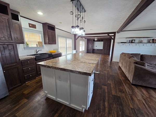 Est $1,062/moLarge 28' x 72' Clayton Home with 4 BR, 2 Bath. 2016 SqFt and split floorplan. Open kitchen/dining/living room with 4x8 island with seating. Second living room off kitchen. Oversized deck by the pool and covered porch. Two storage sheds and two additional insulated buildings with electricity. Tornado shelter. New 50gal smart water heater installed Nov 2024. Whole home water filtration system with extra filters. Property to be sold as-is.