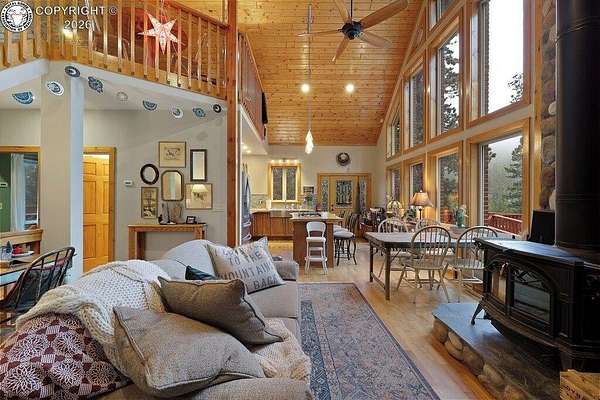 Discover a rare mountain retreat in Wetmore, Colorado, offering privacy, beauty, and functionality on 35 secluded acres. This two-story mountain-style home features 2,338 square feet of well-designed living space, blending rustic charm with modern comfort. Built in 2002, the home includes 3 bedrooms and 3.5 baths, perfect for everyday living or entertaining. The primary suite opens to an elevated wrap-around deck with sweeping views of the Wet Mountains. Inside, cozy cabin charm shines with a wood-burning stove in the living room, creating a warm and inviting atmosphere year-round. Whether hosting guests or enjoying quiet evenings, this home offers a peaceful Colorado mountain lifestyle. The partially fenced, forested acreage provides endless outdoor enjoyment with a covered patio, private shooting range, orchard, and nearby BLM land ideal for hiking, hunting, and wildlife viewing. Dramatic canyons, cliffs, and rock outcroppings surround the property. Additional features include a detached heated entertainment building with electricity and plumbing, plus a renovated playhouse for storage, hobbies, or family fun. Designed for self-sufficient living, the property includes an island kitchen with high-performance appliances, radiant in-floor heating, solar power, and a 17KW backup generator. Just minutes from Westcliffe, enjoy access to medical services, a regional airport, and year-round recreation, with the Great Sand Dunes and Arkansas River nearby-offering the best of Southern Colorado living.