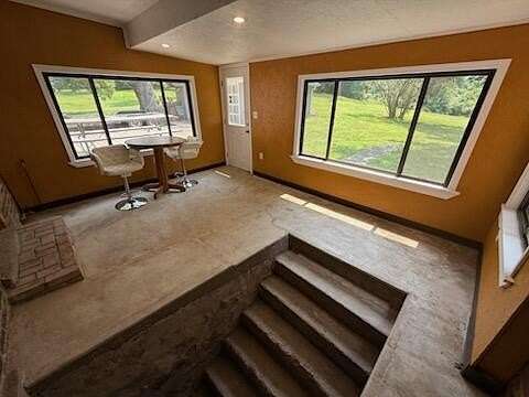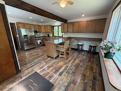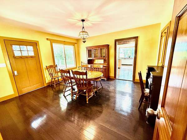 Enter tree lined driveway to this completely remodeled 3-bed, 1-bath home on 2 acres. Features include hardwood flooring in the dining room, vinyl wood plank flooring in the custom bright kitchen, and new carpet in bedrooms. The main floor offers a primary bedroom, and cozy 3-season room with access to full basement featuring stone walls. Upstairs has two bedrooms and an office nook great for work or study. Enjoy outdoor living on the new porch or deck, overlooking wooded yard including historic oak that's over 17.5 ft. diameter.. Other updates include new roofs on the garage & sunroom, a new furnace, A/C, water heater, drywall & electrical. The bathroom has new plumbing, and the home offers updated sinks, laundry hookups, and newer appliances.
