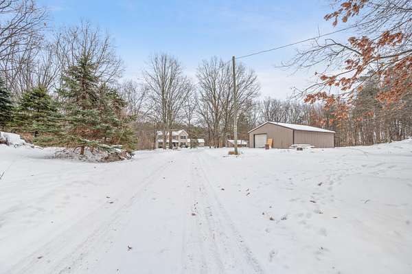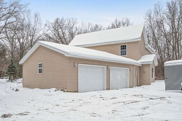 Value buy of the season! This modern home needs some love, but it's combination of vast size, overall condition and location are going to be very hard to match at this price point. Almost 5 acres of gorgeous wooded property tucks this stately home away from view. Over 4000 square feet of potential finished square feet currently offers up 5 large bedrooms including a main floor primary, 3 roomy full baths, and a half bath ideally located for guests. The full walkout basement is partially finished, and is plumbed for a second kitchen and bathroom. You will appreciate the large attached garage, the roomy polebarn, and other ancillary outbuildings. You have got to see this one, set up your tour today!