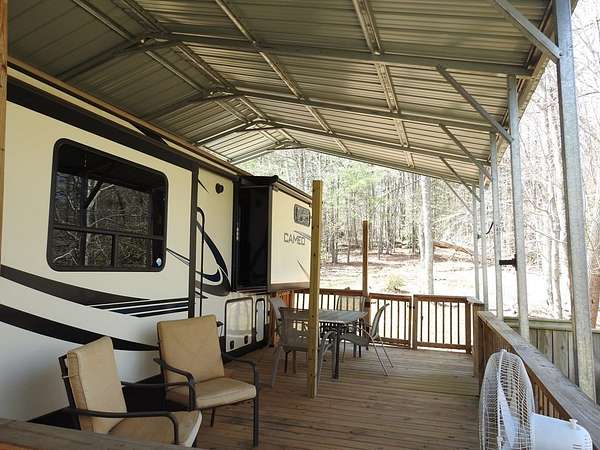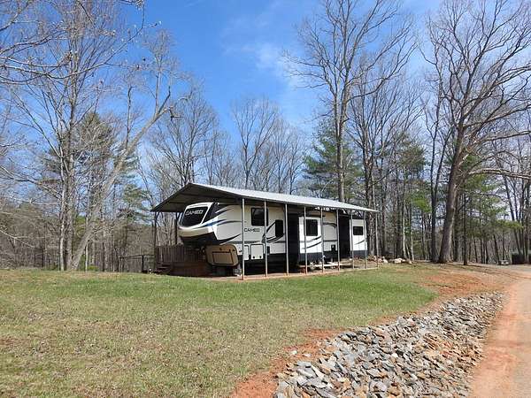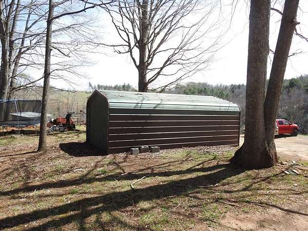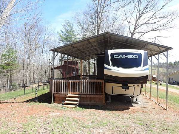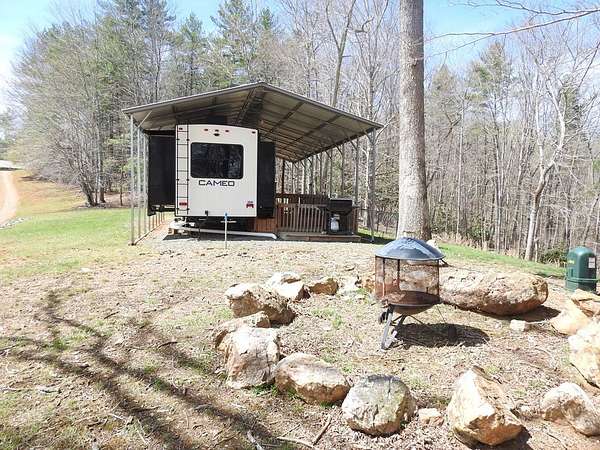 Secluded 5 acres located in the Blue Ridge Mountains of Grayson County, Virginia. The property features a like new 5th wheel camper with metal cover and deck for entertainment or simply enjoying nature. The property also has a well & septic. The wood sided outbuilding has electricity & water and the metal outbuilding has electricity which provides alot of storage. This beautiful mountain retreat features mature hardwood trees with established trails which makes it ideal for four-wheeling and hiking, hunting, and other outdoor activities. Also, this property is just minutes away from public access to the New River and downtown Galax.