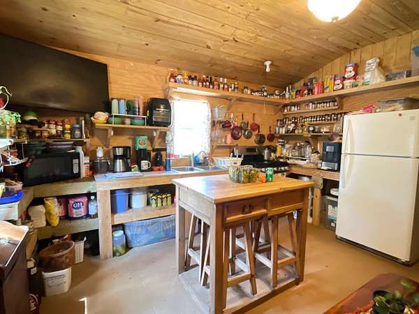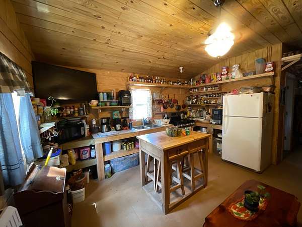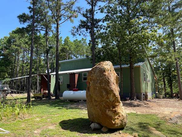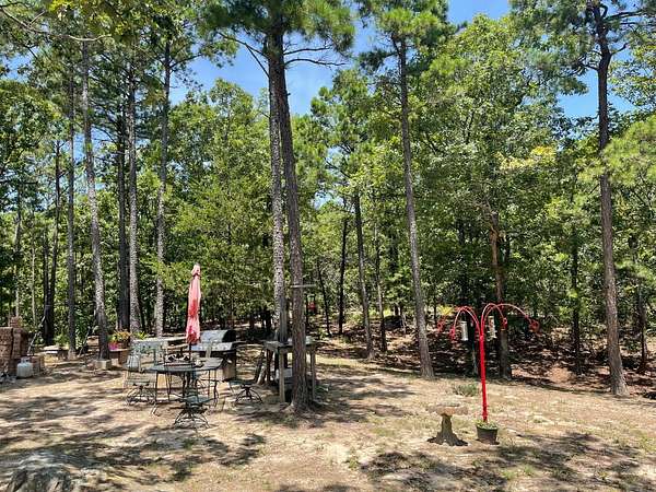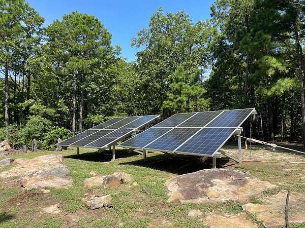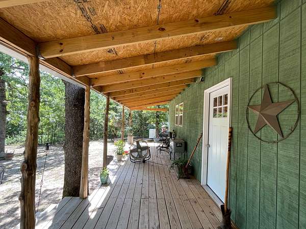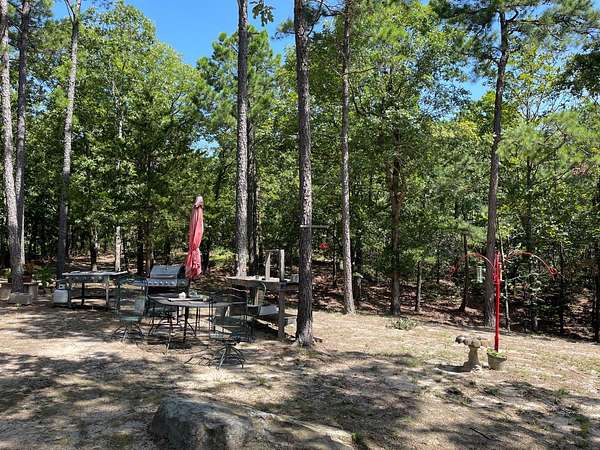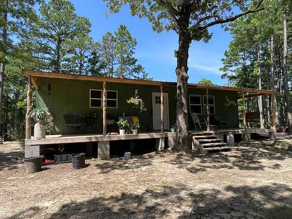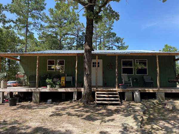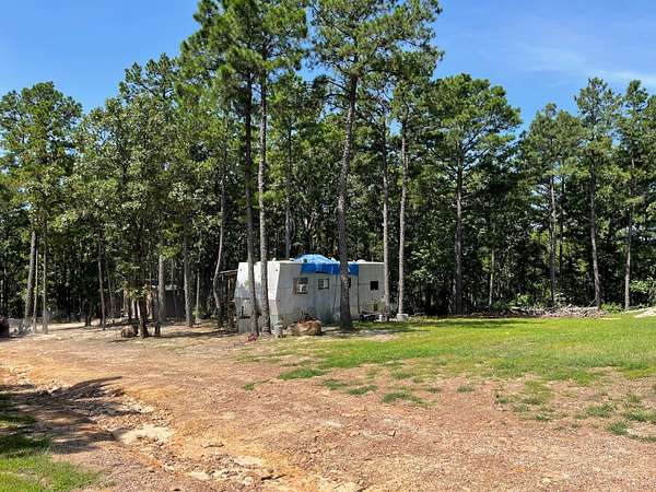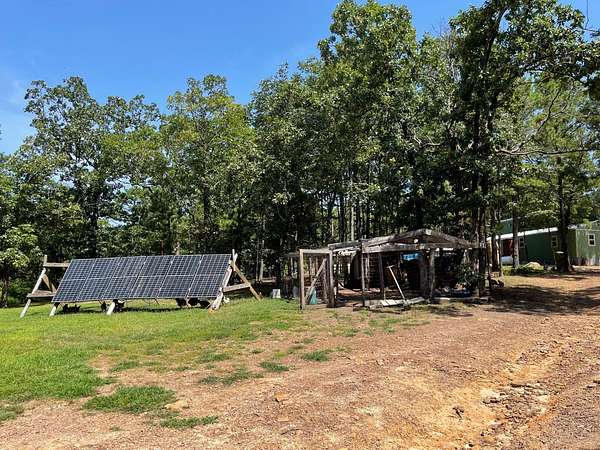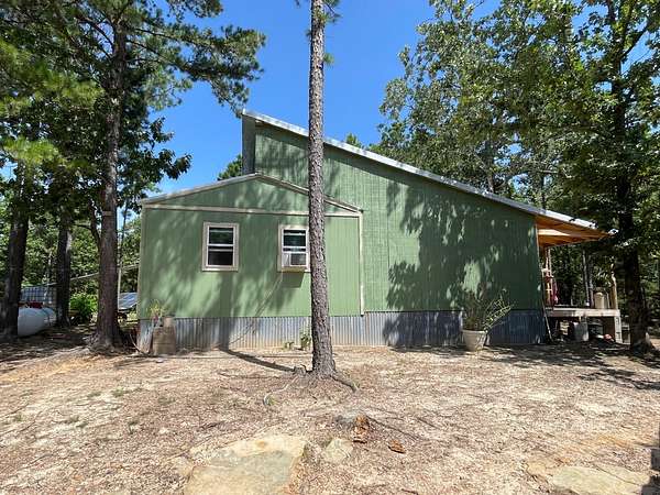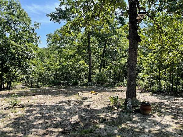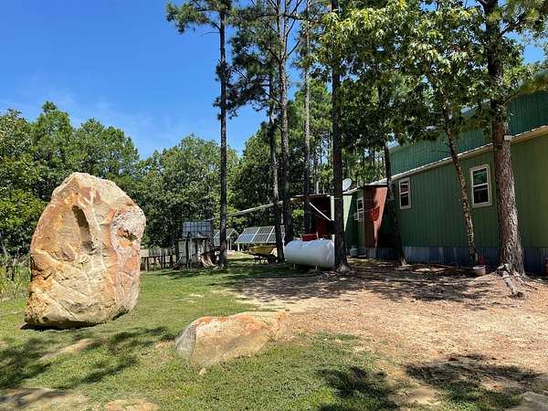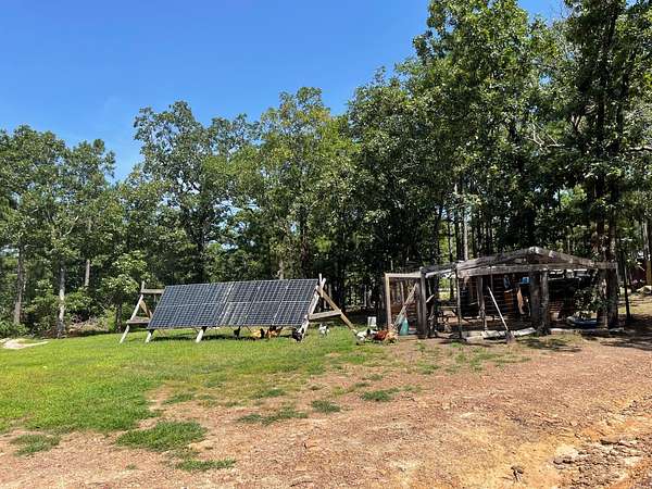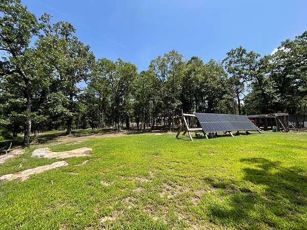 The Rock- Off Grid Home & 50 acres While driving up the two track trail to this fabulous homestead, the wonderful feeling of nostalgia will come over you as your eyes feast not he quaint setting unfolding before your very eyes! This wonderful 50 acre homestead is nestled near Wild horse gap and Bow mountain approximately 9 and a half miles back into some of the most beautiful wilderness timberland and mountains of Oklahoma. Driving to this magnificent homestead is definitely part of its charm. It feels like you are driving back in time. I can actually feel all of the stress and tension melt away as I venture further into this mystical wilderness world. As I approached the Rock Homestead, the free ranging chickens, the wonderfully productive garden, the scattered utility buildings that were all purpose built by the loving hands of the owners, all shout out that this is a very special sanctuary. The Rock Homestead is off grid meaning there are no city utilities here, no electric or water pipes for it. The first thing that belied the 150 year old nostalgic look and feel was the twelve solar panels that provide electricity for the homestead. The windmill, a wired generator spinning at the top of a high pole in the gentle breeze punctuated the fact that the owners knew what they were doing. Between the two solar panel arrays there is a total of 14,000 watts charging the 12 solar batteries while the sun shines and the 1600 watt wind charger charges the batteries all night with a tear 7 to 10 mph breeze. A very adequate system for this unique compound. The water well is on of the best wells in the area. It is 200 FT deep and is drilled directly into a subterranean lake or aquifer. The well driller report it at a minimum of 16 gal per minute of flow. That's plenty for 10 houses and gardens! The water tastes fantastic! You could bottle it and sell it. The main house is 1248 sf. The first half, the original home is finished with a kitchen, living area, full bath and 2 bedrooms. The new addition is ready for a new owner to finish it as they desire. My favorite spot is the 8 foot by 40 foot covered porch across the entire length of the front of the home. We sat for a spell, drank cold water from the awesome well and just enjoyed the serenity of this wonderful homestead. I never wanted to leave! The complimentary out buildings include a little 8x16 storage building for odds and ends. A shop/barn that is 25 ft wide by 15 ft deep that is tastefully built out of a carport. The shop/barn houses deep freezers and canned goods, tools, etc. The open ended 20x21 pole barn houses the tractor and equipment. The 6x8 Well house is very well insulated to protect the water system from freezing weather. The guest house is an 8x30 foot remodeled FEMA trailer home that is quite comfortable. With a full bath, kitchen, dining, living area, bedroom and 2 built in bunk beds. It could sleep up to 8 people. This will make a great hunting lodge for your buddies or great mother-in-law suite. It has a fantastic 8x10 covered front porch adding to its charm and comfort. Both homes are on septic tank systems with lateral lines. The little 5x6 chicken coop & chicken yard is fenced from tree to tree and is roughly 30x50. This sets the over all feel of this wonderfully warm and inviting homestead. The 50 acres is mostly all wooded with trails throughout and a little seasonal creek providing water for the abundant wildlife. Hunting in the area is fantastic with every conceivable game that you can imagine. You'll see white tailed deer, black bear, turkey, squirrel, rabbit, etc. and there is an abundance of all! Come take a look at this enchanting place. You will definitely feel welcome. You must come see it to really appreciate what I am saying here! The Owners live here full time quite comfortably, but life has a way of changing things and they, with much regret must start a new chapter. They must pass their creation of love onto a lucky new owner.