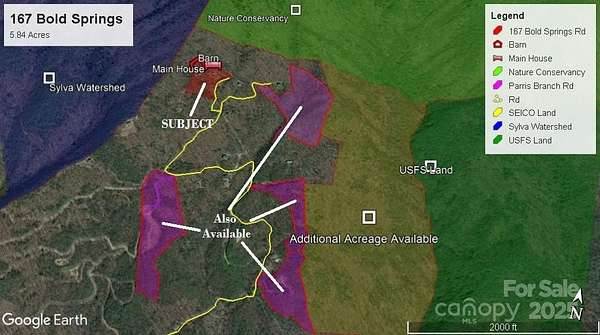 Enjoy the over 20 mile view from a roomy screened front porch attached to a cozy 4/3 mountain home. Knotted wood, twisted laurel and stone bring the beauty of the outdoors, inside. Very well built 2500+- two story barn to store all of your equipment and toys. Combining 2 tracts and 5.84 acres, this high elevation, big view, property offers a highly desired SE to SW exposure within the fabled Plott Balsam Mountain Range. This offering is located within the Sylva Vista Community consisting of mostly large lots with commanding long range views. Room for an additional home site on this offering. This gated and private community is surrounded by the Sylva Watershed, Nature Conservancy and USFS Land. Seller has several other lots available to combine with this sale if interested. See MLS 3935940 for the master listing. Near this property is a 160+- acreage that could also be available with cascading waterfalls, large older forests, rock outcroppings and rare fauna and flora.