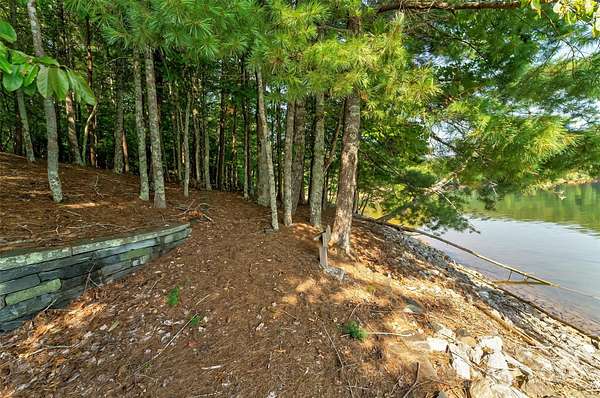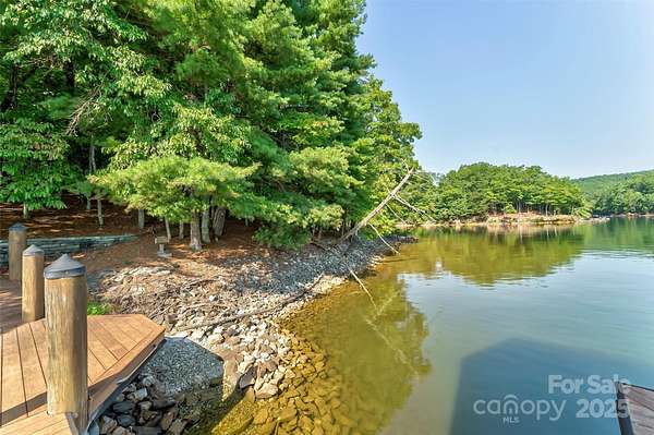 The ultimate in privacy and location on beautiful Lake James. This 13.8 acre parcel in Black Forest is well prepared for your private or family compound. Beautiful stone columns greet you at the entrance to the property. The level drive leads you from the cul de sac through the property, across the stone flanked ravine to the hand built barbeque and rock fire ring near the waters edge. Zero entry stone walkway into the water makes swimming easy for everyone and your pets. Covered stationary dock has a tongue and groove ceiling with pull down steps to a storage area above. Over 1500+ feet of shoreline with rock stabilization. Multiple building sites with lake and mountain views. Gradual slope over most of the property gives room for a main house and multiple guest homes. Enjoy miles of hiking trails throughout the community which also has a full time caretaker, community building, Open Space meadow, Lake and Riverside Camps for gathering and enjoying nature.