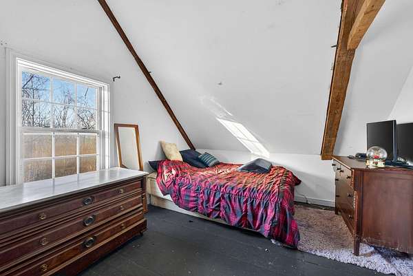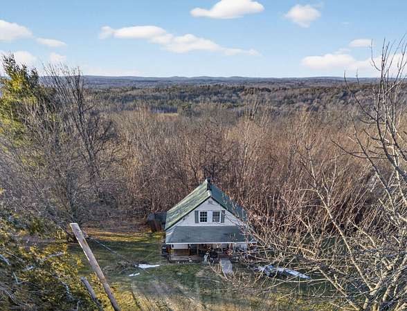 Versatile property perched on Calls Hill in Dresden with appeal to investors, first-time home buyers, or those with equestrian or future land-use aspirations. Set on just under six acres with substantial road frontage, the property offers a blend of open yard and wooded acreage, providing privacy, flexibility, and a peaceful rural setting. The home features a functional layout with a combined kitchen and dining area, comfortable living space, and two upper-level bedrooms with character, including sloped ceilings and exposed beams. A covered front porch provides a welcoming outdoor space to enjoy the surrounding countryside. A large detached outbuilding with multiple overhead doors offers generous space for storage, equipment, or workshop use, adding to the property's versatility. The elevated setting and expansive surroundings enhance the sense of space and separation, while remaining within reasonable proximity to nearby towns and services. A unique opportunity for buyers seeking land, utility, and long-term potential in a scenic Midcoast location.