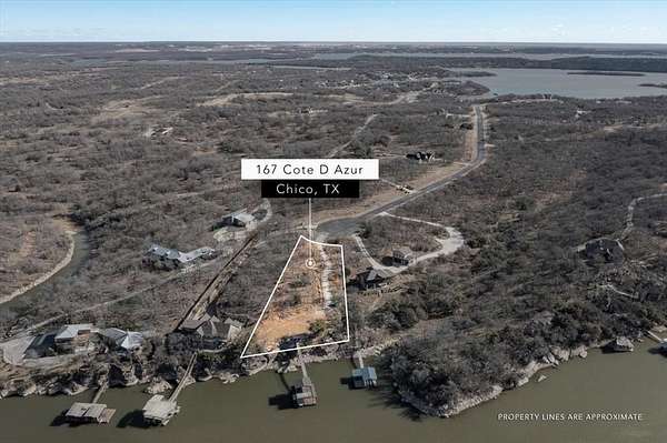 Located at 167 Cote D'Azur Drive in Chico, Texas, Lot 127 is a build-ready lakefront property on Lake Bridgeport that allows direct access from the home site to the existing dock. The property includes a two-story Wahoo dock with three jet ski slips and a 10,000-lb boat lift. Utilities are already run to the lot, reducing initial site preparation for construction. The parcel is situated within the established Northstar subdivision, which offers community amenities including a swimming pool, pickleball court, and gated entry, as well as paved road access. The lot is in Wise County with reasonable proximity to the DFW Metroplex, making it suitable for a primary residence, weekend home, or investment property. A recorded survey is on file with clearly defined property boundaries, and major lakefront infrastructure is already in place, allowing for a more streamlined building process.