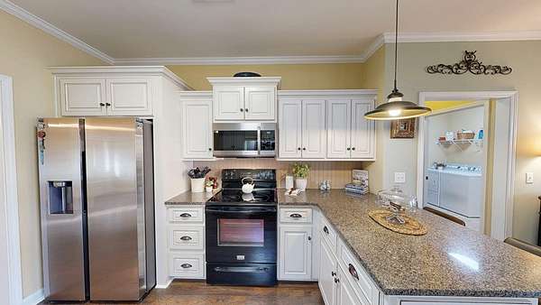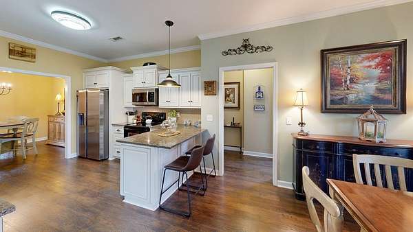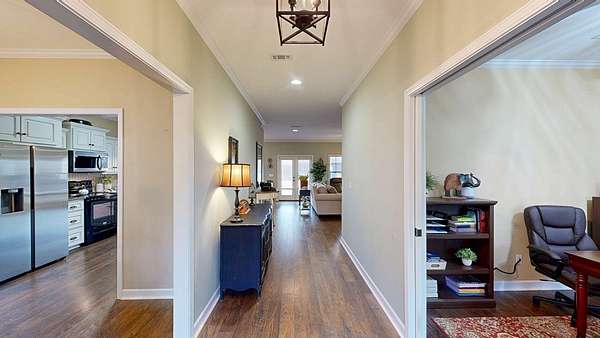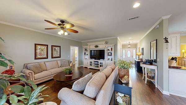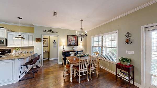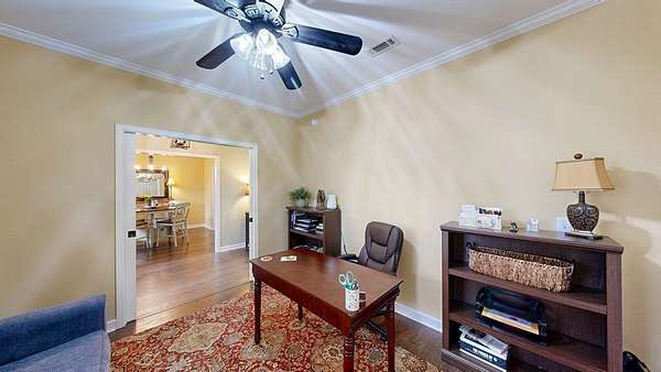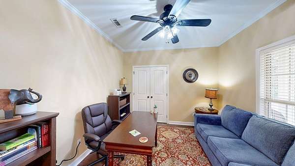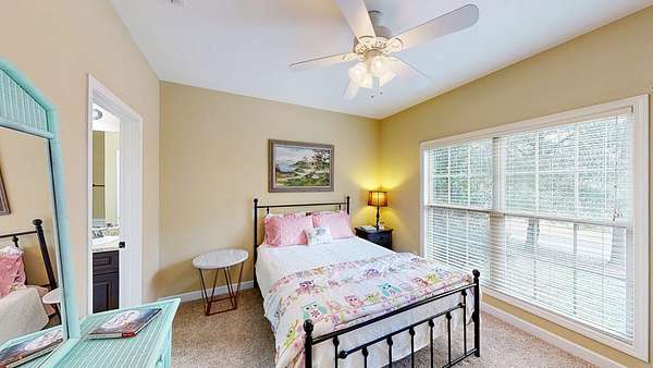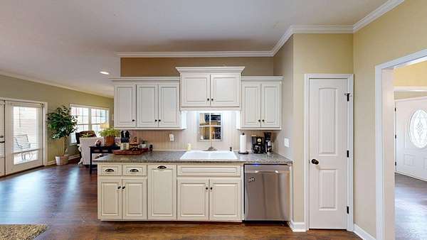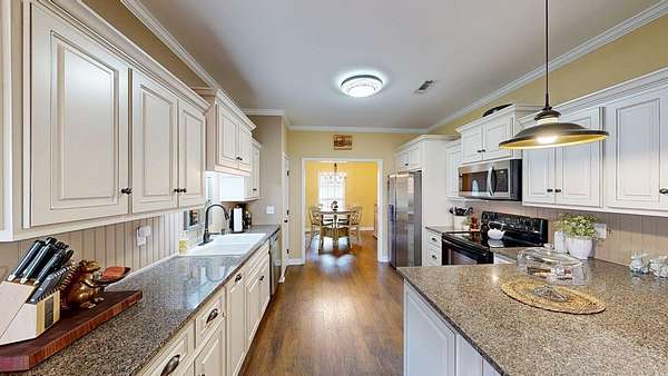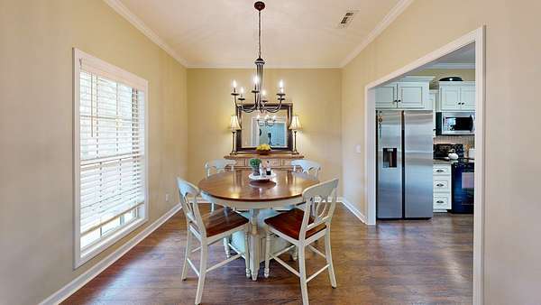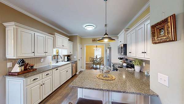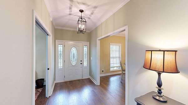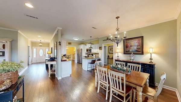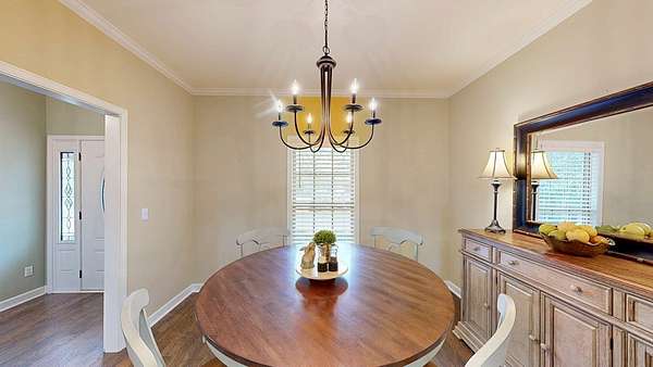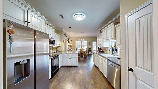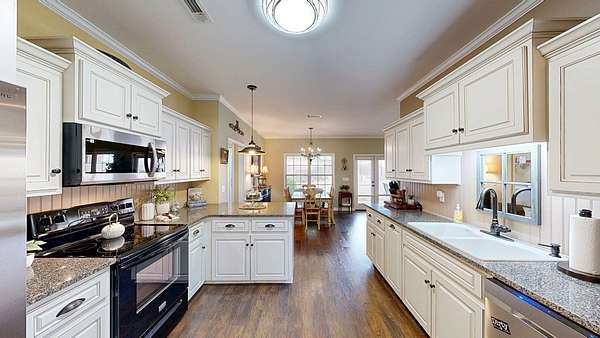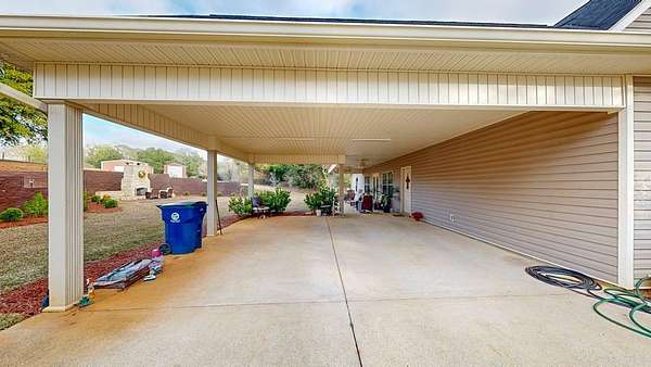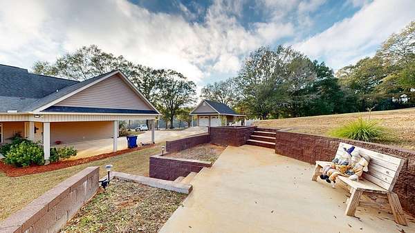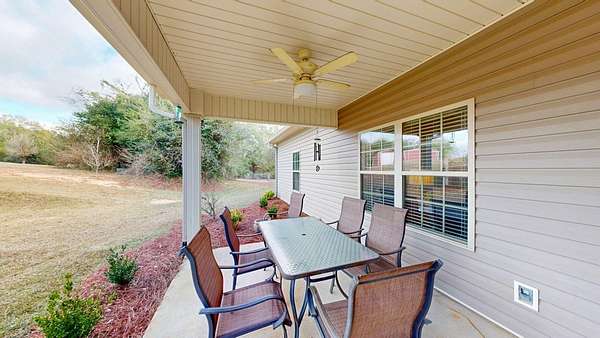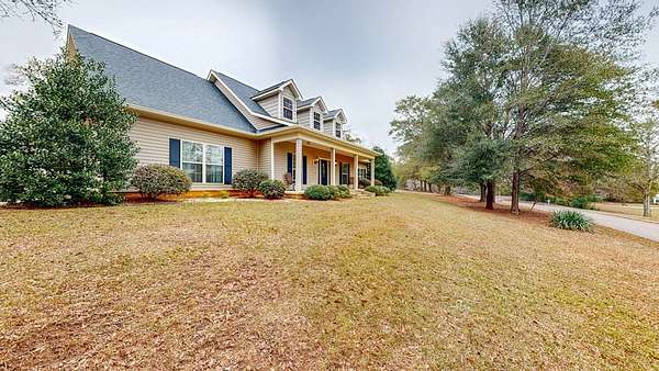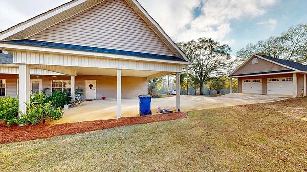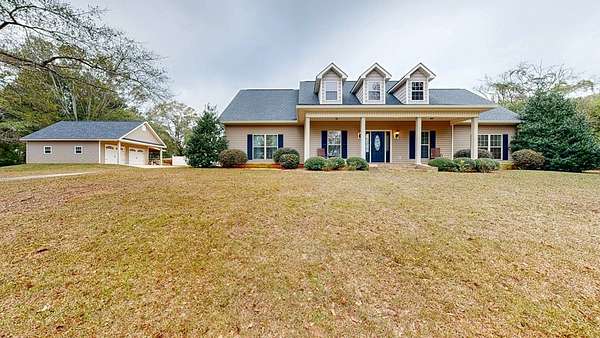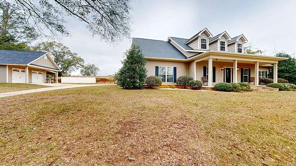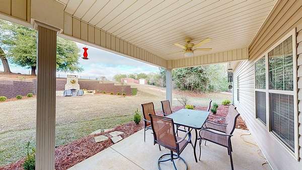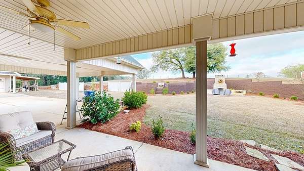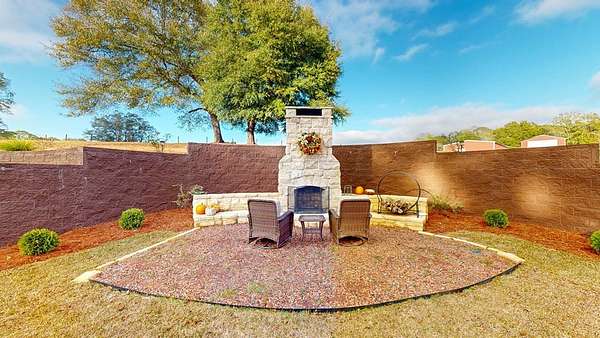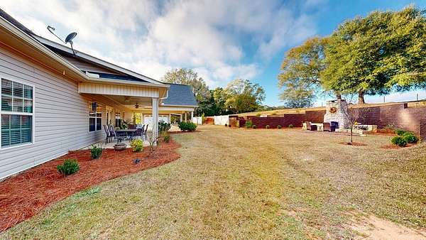 Perched on a hill on 1.98 acres in the gated Dakota Springs Subdivision, this beautiful Headland home offers 4 bedrooms, 3 baths, 2,372 sq ft, and sweeping views of the neighborhood. A charming covered front porch welcomes you inside, where abundant natural light set a warm, inviting tone. A wide foyer leads past a formal dining room on the left and an office (or optional fourth bedroom with pocket doors) on the right. Straight ahead, a spacious living room opens seamlessly to a second dining area, creating a comfortable and connected living space. The well-appointed kitchen features granite countertops, an eat-at bar, pantry, and all appliances. French doors off the living area lead to a covered patio overlooking a thoughtfully designed backyard retreat complete with an outdoor fireplace, raised patio, and flower beds, ideal for relaxing or entertaining. Just off the kitchen, a short hallway leads to the laundry room and the private primary suite. The primary bedroom includes a tray ceiling, two walk-in closets, and a large en suite bathroom with soaking tub, separate shower, dual vanities, and a makeup area. Two additional bedrooms on the opposite side of the home share a private bath, while a guest bath is conveniently located off the hallway. Storage is plentiful thanks to generous interior closets, a 2-car detached garage with covered lean-to, and a 2-car carport attached to the home with direct access to the laundry room. Call today to schedule your tour!