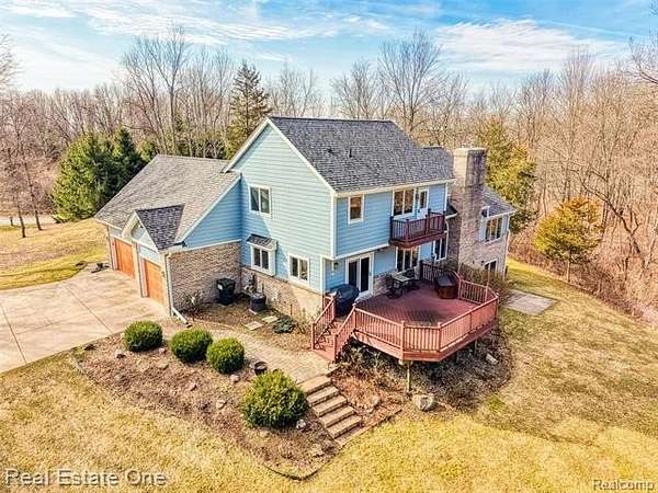 Stunning Contemporary Home on 5 Acres in Putnam Township! Discover your dream home in this enchanting 5-bedroom, 3.5 bath residence, perfectly nestled on 5 picturesque acres. This delightful property features a spacious three-car garage with a sealed floor, providing ample space for your vehicles and hobbies. Step inside to find generous bedrooms bathed in natural light, two cozy wood-burning fireplaces for those chilly evenings, and a welcoming layout that flows seamlessly from room to room. The walk-out finished basement offers additional living space, perfect for entertainment or relaxation and has two bedrooms and a full bath. The heart of the home is the elegant kitchen, boasting a door wall that leads to a beautiful Trex deck, where you can unwind and enjoy serene views of the wooded lot. The meticulously designed brick paver patio is ideal for outdoor gatherings. Convenience is paramount with a first-floor primary suite and an additional bedroom on the main level, which can easily double as a home office. Modern updates include a tankless hot water heater and a reverse osmosis water system for your peace of mind. Recent improvements such as a new roof and gutters (2023) and fresh exterior paint (2025) ensure that this home is not only beautiful but also well-maintained. Located just a stone's throw away from popular restaurants, you'll have the perfect blend of tranquility and accessibility. Don’t miss the opportunity to call this stunning property your own! Pool table stays. Exclusions include the washer, dryer and refrigerator.