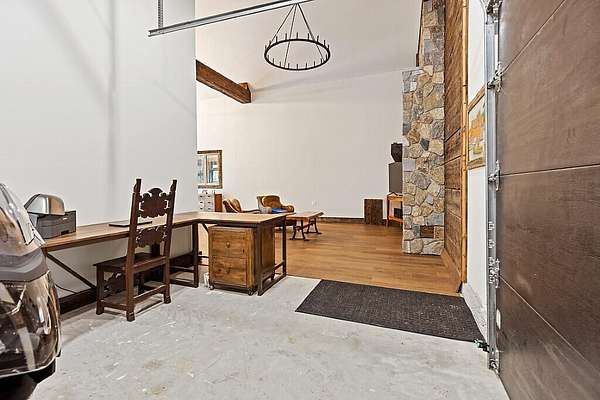 Custom-built Barn style home set on 3 private acres, with 255' of waterfrontage on the Carrabassett River. Designed with a focus on natural beauty, light & architectural elegance, this property offers crafted living spaces both indoors and out. The home has been thoughtfully built from top to bottom, with a layout that offers both form and function, including a gourmet eat in kitchen and a sun-filled main living area perfect for indoor or outdoor entertaining. Built in 2022 this home is a testament to exceptional craftmanship as it perfectly blends comfort, quality, natural light, and old-world accents with the added bonus of waterfront living. Blending rustic charm with modern luxury, this beautiful 2-bedroom, 2-bath home offers the ideal setting for year-round living, summer adventures, and cozy winter getaways. Architectural details abound starting with the custom built ''barn'' doors. Made of mahogany and spanning 12 feet high, these doors open to fully embrace the outdoors. The homeowner can opt to have the doors completely open to nature, or utilize the retractable, garage-like, glass doors which flood the living area with natural light, warmth & unobstructed views of the forest creating a perfect spot for guests, family and entertaining. There is an astounding wall made from re-claimed barn boards hat perfectly accents the 20' ceiling! Some of the door trim is live-edge boards which adds to the charm of the home. There are numerous old stained-glass windows tastefully allowing light and color to reflect into various areas of the home. The modern chef's kitchen is designed for both culinary delight and aesthetic appeal. Prepare to be enchanted by the custom cabinetry, top-of-the-line appliances, a double-sided ''see-through'' propane fireplace for both the kitchen & main bedroom, plus a large island with ample seating.