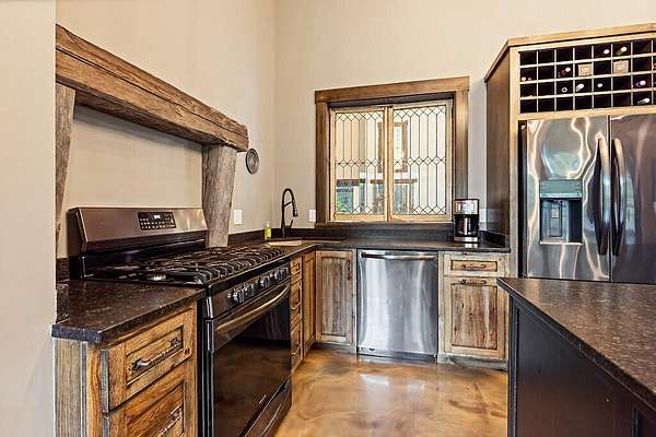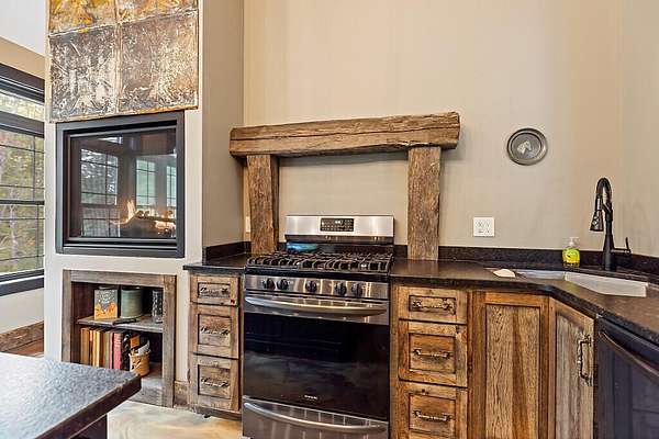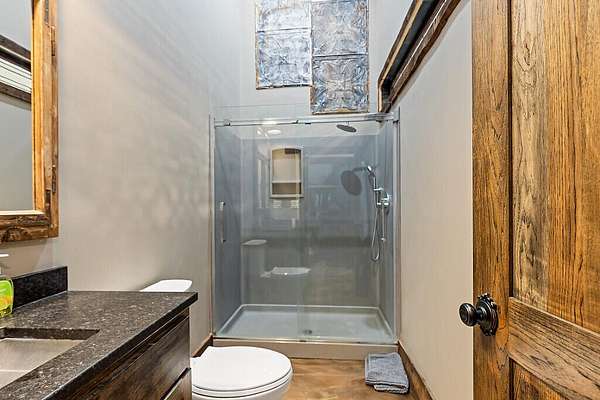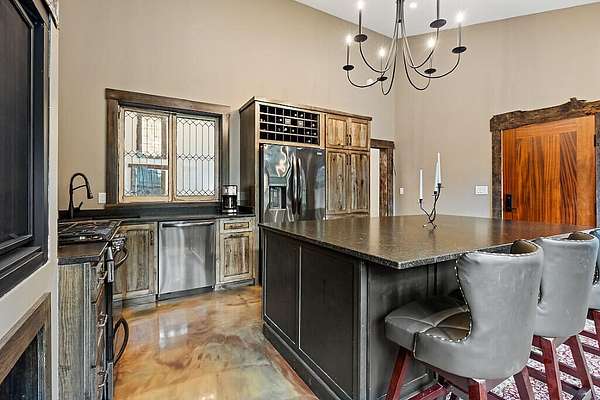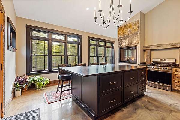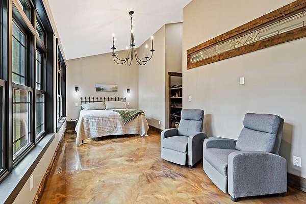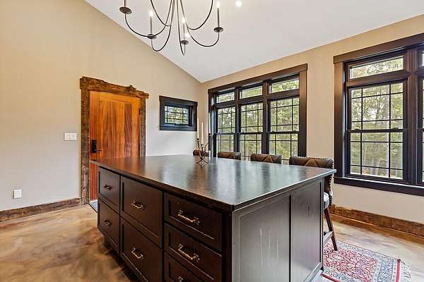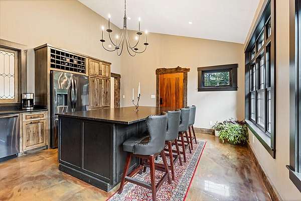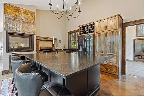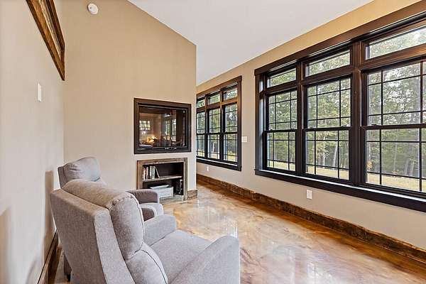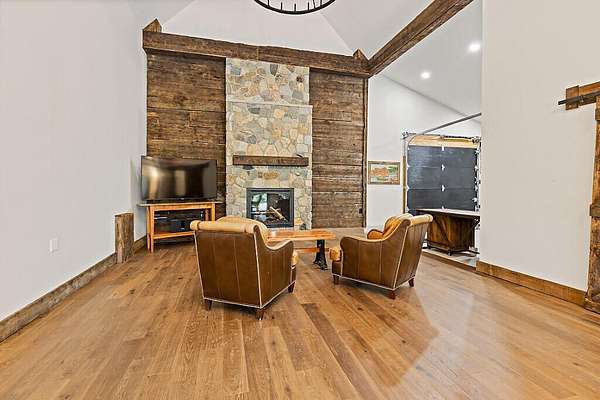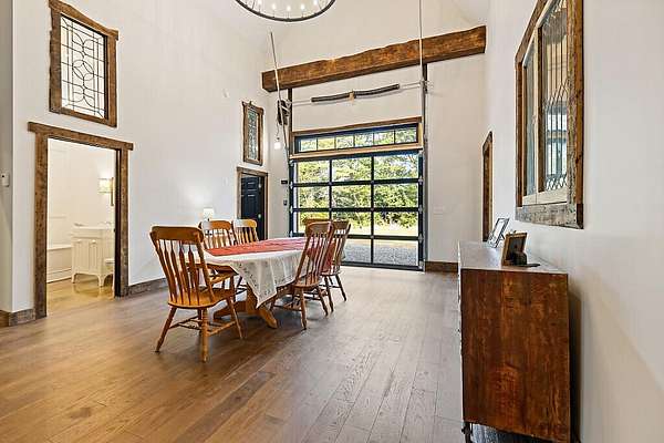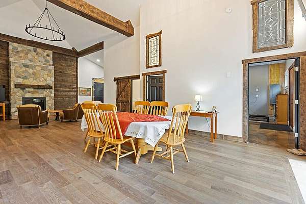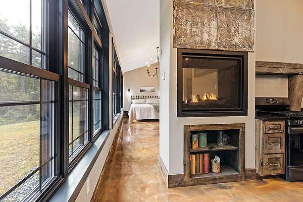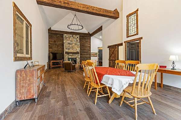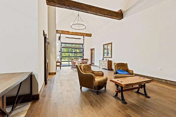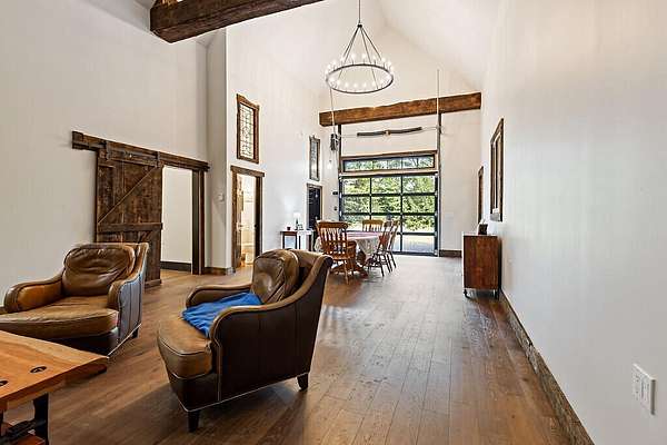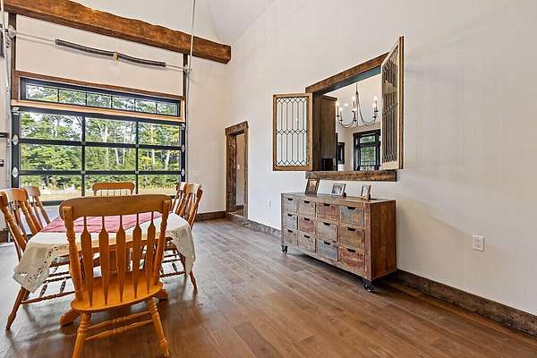 Looking for a corporate retreat or family compound? This home is an ideal retreat & will allow you and your guest to be fully immersed in the great Maine outdoors as it was built for comfort, durability,and low-maintenance year-round living. Custom-built Barndominium on 3 private acres & 255' of frontage on the Carrabassett River. Designed with a focus on natural beauty, light & architectural elegance, this property offers crafted living spaces both indoors & out. A gourmet eat in kitchen and a sun-filled main living area are perfect for indoor or outdoor entertaining. Built in 2022 this home is a testament to exceptional craftmanship as it perfectly blends comfort, quality, natural light, and old-world accents with the added bonus of waterfront living. Blending rustic charm with modern luxury, this beautiful home offers the ideal setting for year-round living, summer adventures, and cozy winter getaways - you can even access the ITS snowmobile trails! Architectural details abound starting with the custom built barn doors. Made of mahogany and spanning 12 feet high, these doors open to fully embrace the outdoors. Opt to have the doors open to nature or utilize the retractable, garage-like glass doors to flood the living area with natural light, warmth & unobstructed views of the forest. There is an astounding fireplace wall made from re-claimed barn boards that perfectly accents the 20' ceiling! Some of the door trim is live edge adding to the charm of the interior. Several lead-glass windows are tastefully scattered throughout, allowing light to reflect into the home. The modern chef's kitchen is designed for both culinary delight and aesthetic appeal. Prepare to be enchanted by the custom cabinetry, top-of-the-line appliances, a double-sided see-through fireplace for both the kitchen & main bedroom, plus an island with ample seating. More land/waterfront & a camp available see MLS #