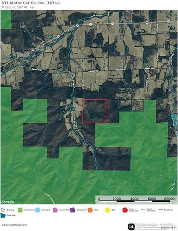 Discover 167+/- acres in Iron County, Missouri, offering the perfect blend of natural beauty, privacy, and recreation. Tucked along dead-end County Road 20A, this immaculately maintained property showcases a mix of mature hardwoods, scattered pine, cedar, as well as a creek meandering through the property. The entrance and manicured driveway create an inviting first impression, leading you to endless prime building sites--ideal for your dream home or family compound equipped with multiple homes. Surrounded by distant mountain ranges and bordering Mark Twain National Forest creating the opportunity to enjoy 1,000's of additional acres for your enjoyment. Outdoor enthusiasts will appreciate the proximity to Taum Sauk Mountain, Johnson Shut-Ins, and the Mark Twain National Forest--renowned destinations for recreation and adventure. Despite its secluded setting, the property offers convenient access: ~24 miles west of Farmington, ~18 miles south of Potosi, and ~75 miles south of St. Louis. If you've been seeking a pristine Missouri acreage with water, natural beauty, and unmatched versatility, this Iron County gem is one you won't want to miss. Taxes ~$90.
