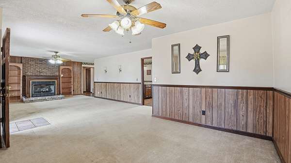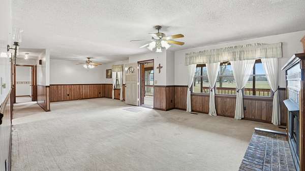 Brick home with front and side wrap around covered deck on 5 acres, 3 stall 10x30 barn/storage building, back fence, small pond, detached garage that has been insulated and wired for HVAC unit to be placed. Large rooms including large living room, dining and master. Natural Gas Log Fireplace, Stove and water heater. Lots of built ins in 2 1/2 car garage and shelving for storage plus storage room on back of home beside garage. Gutter guards in place. Zoned bedrooms for privacy. Large master suite with large closets and cedar lined walk-in closet. ALL THIS AND NO CITY TAXES!!!! Country feel but close to Tullahoma for shopping and entertainment. Bookcases on sides of fireplace do not remain.