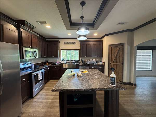 Under contract-accepting backup offers. Welcome to your future country retreat! Nestled at the end of a quiet street and set on over two acres of peaceful, private land, this 2020 Scotbilt manufactured home offers incredible potential and space to make your own. With four spacious bedrooms and two full bathrooms, this home invites you to bring your vision and a bit of elbow grease to restore it into a stunning rural escape. The property is already equipped for animals and outdoor hobbies, with room for your toys and pets--currently used as a horse pasture by the owner. Inside, the home impresses with a generously sized kitchen featuring a massive island, sleek stainless steel appliances, and 42-inch upper cabinets, making it the ideal hub for cooking and entertaining. A formal living room, separate family room, and large dining area provide ample gathering space for family and friends. The luxurious primary suite offers a comfortable and private retreat, rounding out this home's smart layout. Whether you dream of starting a hobby farm, enjoying country living with room to spread out, or simply embracing peace and privacy, this property presents a rare opportunity to invest in your lifestyle. Don't miss your chance to transform this hidden gem into a beautiful homestead tailored to your dreams.