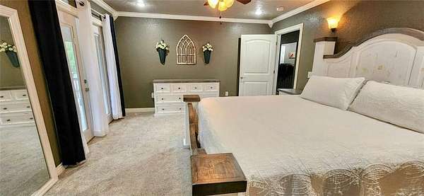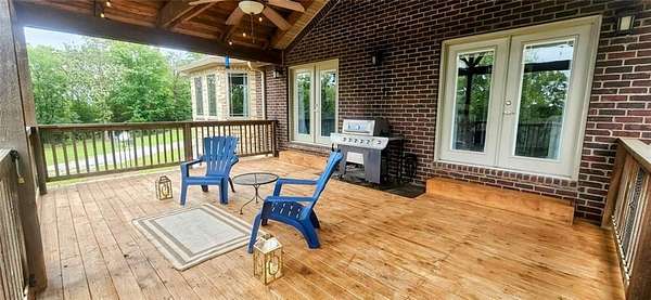 Stunning Retreat features panoramic sunset views and a newly updated guest cabin. Discover your dream home with this beautiful and spacious property tucked away in a serene setting--just minutes from the heart of Huntsville. Step inside to an open-concept kitchen featuring stainless steel appliances, gas stove, two dishwashers, and a large walk-in pantry. The living room offers a gas fireplace. The master suite includes a jetted tub, walk-in shower, plumbing for dual vanities, and a generous walk-in closet. Two additional main-floor bedrooms share a Jack-and-Jill bathroom. The walk-out basement features a spacious media room with a wet bar, full bath, two additional bedrooms, a storm shelter with 8-inch concrete walls, and plenty of storage. A large deck offers a gas hookup for a grill and TV outlet. The fenced backyard gives plenty of space for pets and garden for your vegetables. The guest cabin is a charming retreat of its own, with a kitchen, full bath, w/d hookups, wood stove, full size loft bedroom, and deck.