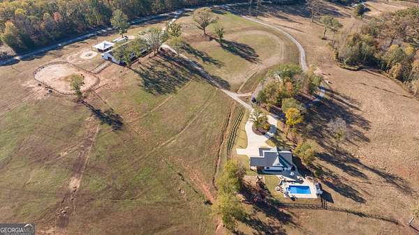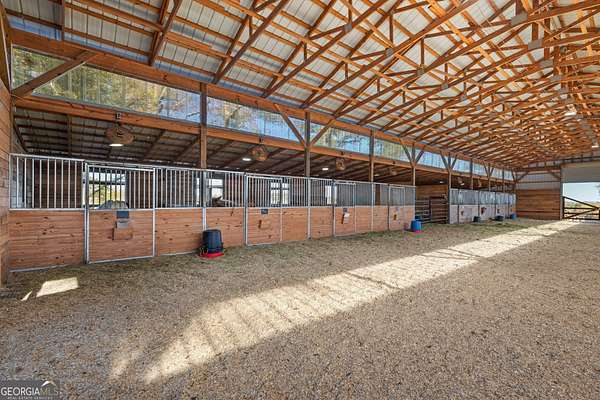 Welcome to 167 McCoy Bridge Road - a private, gated horse farm in the heart of Homer, offering a rare blend of a comfortable home, established income-producing equestrian facilities, and 65 acres of peaceful countryside. The residence sits quietly off the road and features a warm, open living area filled with natural light, along with a practical layout perfectly suited for everyday country living. Comfortable bedrooms, well-kept bathrooms, and a kitchen overlooking the pastures and woodline all work together to create a calm, rural atmosphere throughout the home. Beyond the residence, the property expands into a fully functioning and successful horse operation. The barn includes multiple stalls, a dedicated tack room, and attached living quarters ideal for a trainer, caretaker, or guests. A large riding arena offers ample space for training and exercise, while the surrounding acreage provides established pastures and additional room for riding or future expansion. Currently operated as a horse-boarding and training facility, the farm allows buyers to step directly into a turnkey, income-generating equestrian business. Whether you're seeking a private homestead, a working horse farm, or a long-term land investment, this property delivers with a quiet setting, a practical home, and premium equestrian infrastructure already in place. An 65-acre opportunity like this is a rare find in North Georgia.