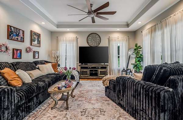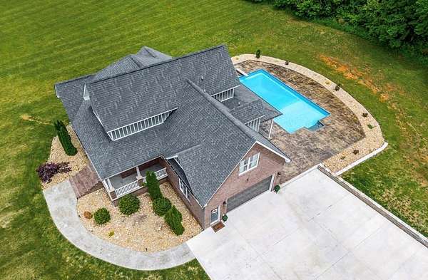 Welcome to your dream property! This beautiful home is situated on 10+ peaceful acres, complete with a stocked pond, large saltwater pool, and a 30x40 pole barn featuring a finished apartment. Enjoy the serenity of deer grazing in the fields and breathtaking views from your front yard. The pole barn apartment includes a full bathroom, climate-controlled room, and additional covered parking for two or more vehicles-perfect for extra storage for a boat. Inside the main home, you'll find four spacious bedrooms, including a main-level primary suite with a dream-sized walk-in closet and a beautifully tiled master bathroom. The open-concept kitchen, dining, and living areas are ideal for entertaining, and there's a half bath for guests. Upstairs, each of the two bedrooms has its own private full bathroom, plus an additional large bedroom or bonus room-perfect for an office, game room, or media space. All of this, just 10 minutes from I-40 and close to everything. Call today for a showing!