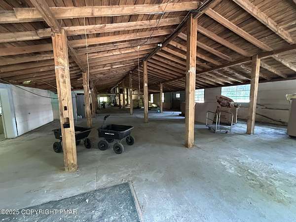Former Holley Ross Pottery property available for lease. A truly unique opportunity for any number of traditional uses or bring your imagination to the expansive building offering over 12,000 square feet set on more than 30 acres with creek and lake. Building is comprised of three main areas, the former retail space which has been opened up to allow a wide-open feeling or flexibility for build out. Attached is metal warehouse building with 12'x12' overhead door, offering 2,400SF of ground floor space and over 2,000 more square feet of mezzanine storage accessible with forklift. Third space will be a newly finished two-bedroom apartment to complete a live/work setup, or for an employee or rental. Existing paved parking area, shared with owner. The beautiful creek, lake and wooded lands also add to the possibilities of this property, all accessed via a suspension bridge over creek. NO ZONING makes your creative vision a possibility.
