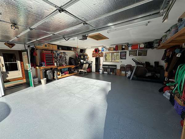 Meticulously cared for and updated single-level home within the highly coveted Double Arrow Ranch. Located on a Cul de sac in Phase VI, one of the most level and parklike areas of the ranch, the rear yards of the neighboring homes adjoin each other making this home's back yard feel expansive. It also feels very private because the neighboring homes to the west sit below a bench and it's like they aren't even there! The two-car garage has built in shelving for storage as well as a durable epoxy floor coating. From the garage you enter the home through a convenient and covered breezeway, so the elements won't be a factor when bringing your treasures home. Luxury vinyl plank flooring welcomes you into the home and has been installed in the living room, laundry room, kitchen, and both bathrooms. Both the dining room and owner's suite offer access to the large-covered porch where you can enjoy outdoor dining, or simply relaxing. It's a short walk to the firepit complete with specially built furniture to enjoy a campfire on those cool nights. The zoned underground sprinkler system will keep your lawn lush and green all summer long. The large owner's suite, located in the southeast corner of the home has a walk-in closet, a 3/4 bathroom with a walk-in shower, and additional storage closet. The two guest bedrooms are located on the west half of the home. One bedroom is complete with a murphy bed to allow multiple daily uses but still be available to function as a bedroom when required. The owners have done continuous updates that include a new roof in September of 2025, new gutters in January 2026, the home and shed exteriors were restained in August of 2025, Trex decking was added to the breezeway and covered porch deck, new LVP flooring, new kitchen countertops and backsplash, ambient lighting in the kitchen, a utility sink was added to the laundry room, and a new Toyotomi direct vent stove was installed in 2023. The 10' x 12' shed has ample room to store a variety of items. Included in the sale are the Washer, dryer, microwave, dishwasher, refrigerator, murphy bed, and firepit furniture. Potentially offered turn-key with an acceptable offer, with the exception of the items listed in supplemental documents.
