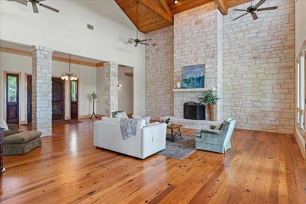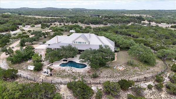 Experience expansive views of the Texas Hill Country between Wimberley and Blanco in the gated community of Wimberley Ranch Estates. This extraordinary home was strategically placed on this 14 acre tract to capture unobstructed long distance views of the Hill Country from the large back porch, pool/hot tub, Living Room/Kitchen and the Primary bedroom. When you walk in the front door you will be amazed by the beautiful Long Leaf Pine floors, tall ceilings and quality of design and construction. The Primary bedroom has access to the back porch, a massive closet, sizable bath with a walk in shower and soaking tub with outstanding views. Adjacent to the bath is an exercise room/office that has great views as well. All bedrooms have en suite bathrooms and there are two half baths. Outside there is a fire pit and fenced garden in the yard and hiking/nature trails below the house that traverse the acerage. This home was built to accomodate a crowd inside and out. With a porch that runs the length of the backside of the house, a large Great Room and plenty of parking in the circle drive you can host family and friends for special occasions they will never forget. With live music events, the Texas Wine Trail and many rivers and lakes in the area, this home is a short distance from many of the features that make the Texas Hill Country such a special place to call home. This property is located equidistance between downtown Austin and San Antonio. It is a short drive to the Square in Wimberley, Blanco, Johnson City or Fredericksburg. Whether you are looking for a weekend escape or a primary residence you will want to add 167 Wimberley Ranch Dr to your list of "must see" properties.