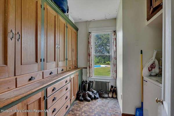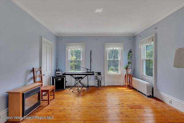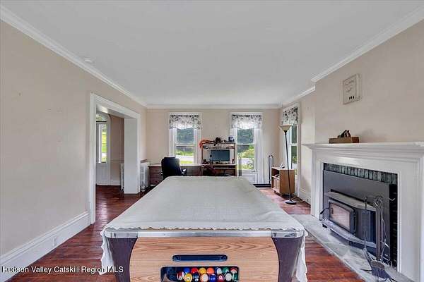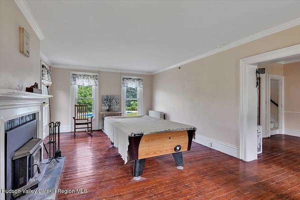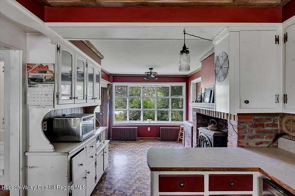 Where the road curves and the mountains rise, you'll find Bluebird Ridge, a peaceful country haven nestled on 2.12 acres with sweeping views, timeless charm, and room to dream. This 5-bedroom, 3-bath Colonial welcomes you with soaring ceilings, beautiful light, and spaces designed for gathering. The heart of the home is the classic country kitchen, complete with a brick fireplace and wood stove insert, and a massive bay window overlooking the saltwater pool, with the components in place (just hook up the fuel) to be heated as well, and private backyard. It's a space where mornings begin with sunlight and end with stories around the hearth. The family room offers another cozy retreat with a second fireplace and insert, perfect for colder seasons and evening unwinds. Upstairs, the landing has been beautifully redone, leading to four bedrooms, including a vaulted-ceiling primary suite with a large closet and a bathroom that's ready for your finishing touch-all plumbing complete and materials are already on site to finish. One additional bedroom has also been updated, while the main floor offers a bedroom with its own en suite, ideal for guests or multigenerational living. Step outside to explore the lower field with mature fruit trees, cool off in the saltwater pool, or enjoy a quiet moment on the covered front porch. There's also a laundry room with built-ins and an attached garage. Set in the heart of Washington County's rolling hills, Bluebird Ridge is more than a house; it's a place to root, restore, and write your next chapter.