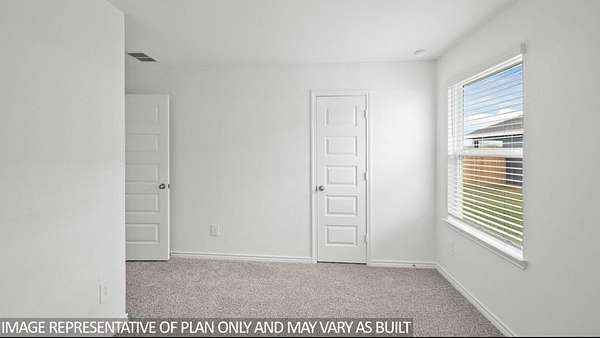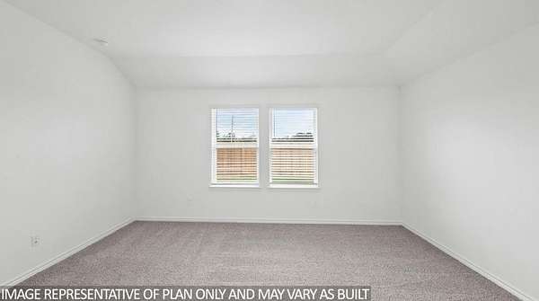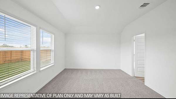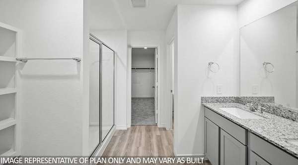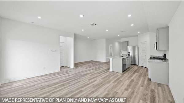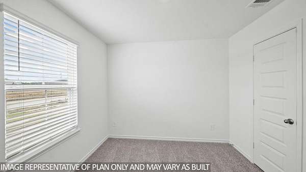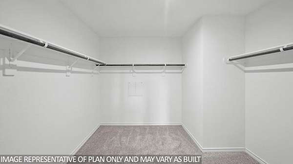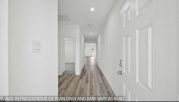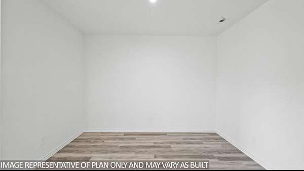 The Harris is a single-story home that offers 1,831 square feet of living space, a two-car garage, four bedrooms and 2.5 bathrooms. As you enter the long foyer you will pass two spare bedrooms, bedroom 3 and 4, and the second bathroom. As you continue down the hall, you will pass the final spare bedroom, bedroom 2, as well as the utility room, powder room and extra storage closet. The entry way will then open into the open dining, kitchen and living room area. The kitchen features a large kitchen island for entertaining, granite countertops, a large pantry and stainless-steel appliances throughout. The family room provides plenty of natural lighting to the home, as it looks out to the covered patio., Just off the family room is the private master bedroom with a large walk-in closet.