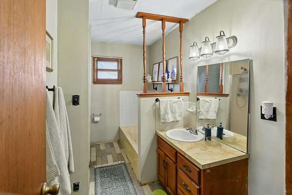 - Crown Molding, Jetted Tub, Laminate Counters, Walk-In Shower