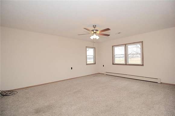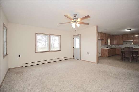 Your own little slice of heaven! Located on a blacktop road. Some fresh paint. NEW vanity in bath. Some hardwood floors under carpet. NEW lateral lines. Concrete siding was NEW in 2007. NEW windows and roof in 2007. NEW electric panel in 2025. Hot water heat unit is about 15 years old. Lots of built-in storage. Wide hallways. Attached 375 square foot 1-car garage. Detached 576 square foot 1-car garage built in 2007 has a concrete floor and electric. Taxes are to be determined since the 3 acres m/l has recently been surveyed off. Seller would sell an additional 2 acres m/l with the 50' X 90' building which was built in 2007 and has a concrete floor for an additional $100,000.