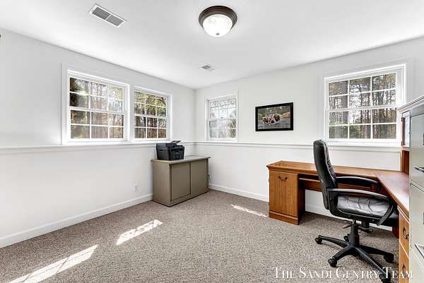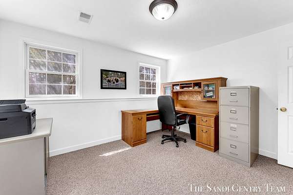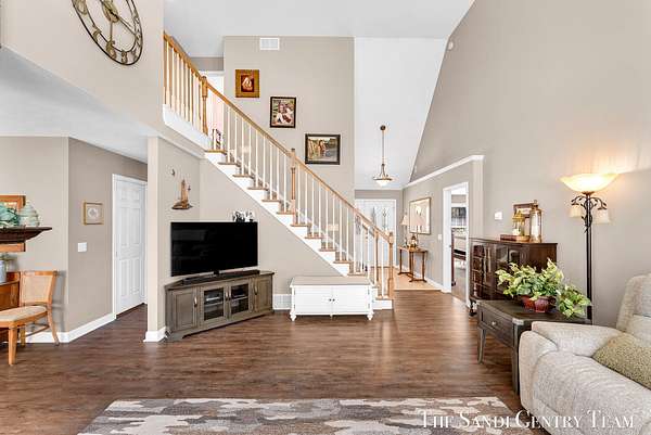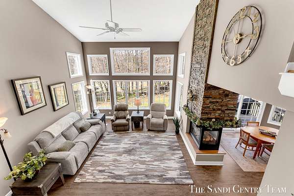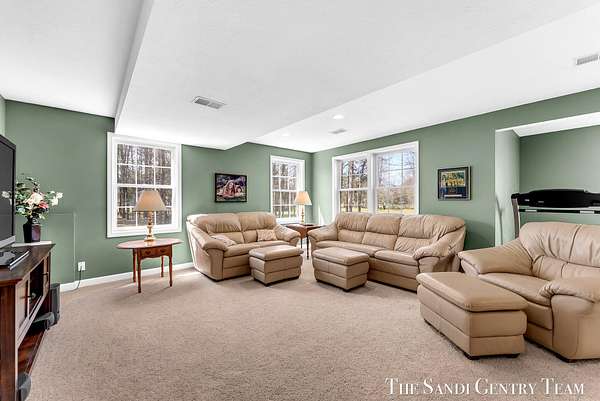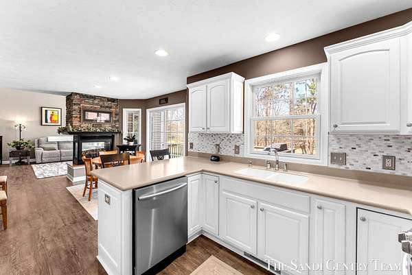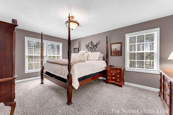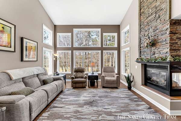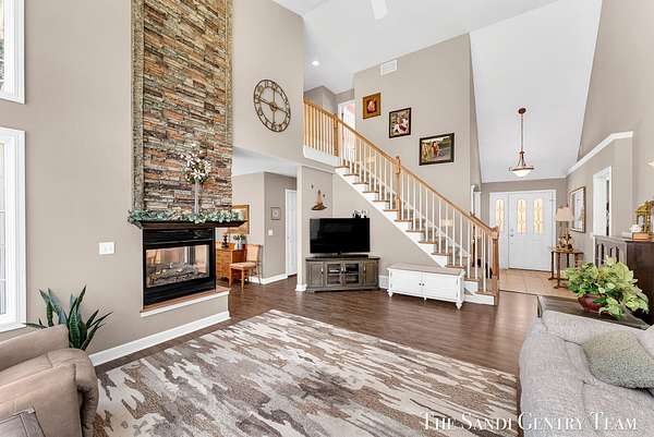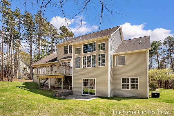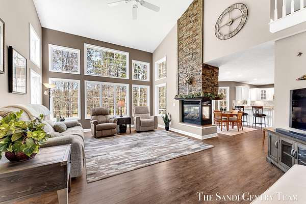 Tucked away on 2.4 acres of beautifully wooded privacy in sought-after Grand Haven Township, this one-owner, custom-designed residence offers the perfect blend of space, and timeless craftsmanship. From the moment you step inside, you're greeted by soaring ceilings and a stunning two-way stacked stone fireplace that anchors the expansive living room--creating a warm, elevated atmosphere that flows seamlessly into the open-concept dining area and kitchen. The thoughtfully designed layout also includes a separate formal dining space, ideal for hosting. The kitchen features stainless steel appliances, ample cabinetry, and a layout designed for both everyday living and entertaining. The main-floor primary suite is a true retreat--generously sized and complemented by a spa-like bath with a tiled walk-in shower, jacuzzi tub, and an oversized walk-in closet. Upstairs, you'll find two spacious bedrooms and a full bath, while the walkout lower level offers incredible versatility with a fourth bedroom, brand-new kitchenette, updated full bath, and expansive living and entertaining space--perfect for guests or multi-generational living. Extensive storage throughout ensures everything has its place. Recent updates including new flooring, fresh paint, and newer HVAC provide peace of mind, while the large 3-stall garage adds convenience and functionality. Surrounded by nature yet just minutes from Grand haven country club, Lake Michigan beaches, and all that Grand Haven has to offer--this is a rare opportunity to own a private, custom home in an unbeatable location.