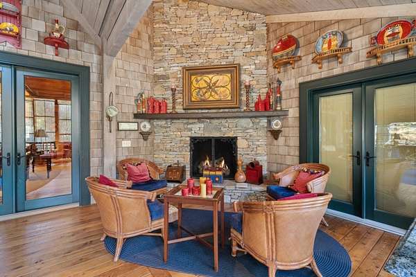 Only once in a decade does a property such as Brookside come onto the market! Adjacent to High Hampton in Cashiers, North Carolina, set two easily accessible acres with exceptional water features and an elegant Estate home. There quite simply are no comparables. Secluded from public view, the home was artfully designed with functional living spaces that take full advantage of the landscaped gardens and the sounds of cascading Fowler Creek, which meanders through the Estate. The 8,343 square-foot home encompasses eight bedrooms, twelve bathrooms, five fireplaces, six HVAC units, and two elevators providing elegant access to the North and South apartment wings. Close to Cashiers and walkable to High Hampton and its amenities. Offered furnished (few exceptions) and decorated, the home bustles with museum-quality furniture and significant collectibles curated over a lifetime of travel. Heart pine floors and custom designer carpets form the backdrop for each room's themed character (For details see "Seller's Notes" and "Three Video Links" in the documents section). While the home boasts multiple gathering and private living venues, the vaulted Great Room is particularly remarkable. From its massive gas-fired stone fireplace to its bespoke display cabinet for a rare porcelain collection, it's a feast for the eye. In temperate weather, the double French doors expand the space farther onto the Three Season Porch, which overlooks and welcomes the soft sounds of the cascading creek below. All in all, Brookside is a remarkable home on an even more remarkable private oasis. The experience of a visit will not soon be forgotten.