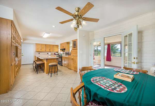 Spacious 3 bedroom, 2 bathroom ranch-style home featuring a beautifully remodeled kitchen and two living rooms for comfortable living. The property is fully fenced and ideal for horses, with plenty of space to spread out. A large metal shop with an RV-height door, plus a smaller metal shop with three bays and a carriage door, provide excellent storage and workspace. Behind the home, you'll find an additional storage building with two rooms. RV hookups are available, and the home comes partially furnished, making it move-in ready.