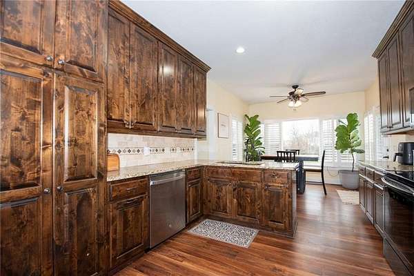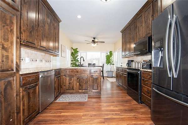 - Ceiling Fan(s), Custom Cabinets, Pantry, Stained Cabinets, Walk-In Closet(s)