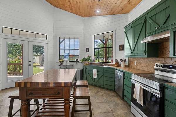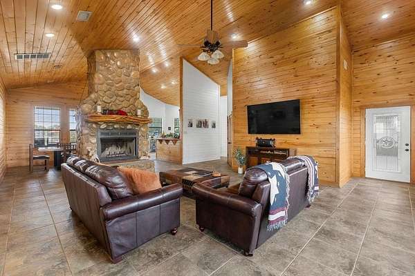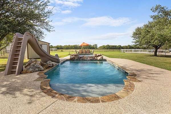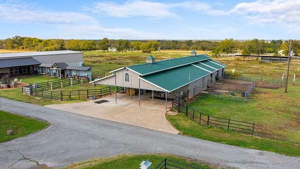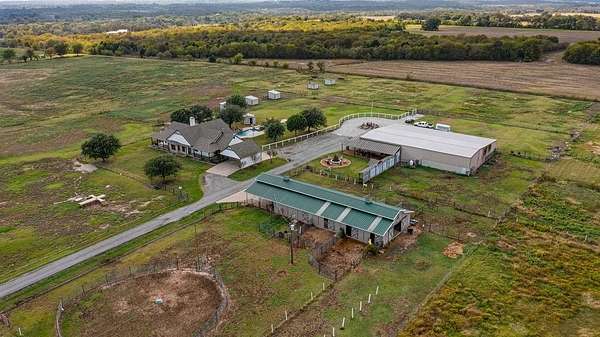 Welcome to 1671 Terry Lane in Sherman, Texas -- a stunning 11-acre property located in the sought-after Pottsboro ISD. This 4-bedroom, 2-bath home offers the perfect blend of comfort and country living. Enjoy outdoor relaxation with a sparkling pool, hot tub, and a convenient pool shed complete with a bathroom. The impressive barn features 8 stalls, a wash bay, hay stall, and a tack room, ideal for equestrian enthusiasts. The expansive party barn is designed for entertaining, featuring a kitchen, bar area, men's and women's restrooms, stereo system, band platform, and a covered round pen out back. A nearly 100-foot carport runs alongside for ample covered parking. Additional highlights include 7 loafing sheds and a storm cellar, making this property as practical as it is beautiful.