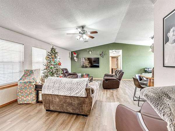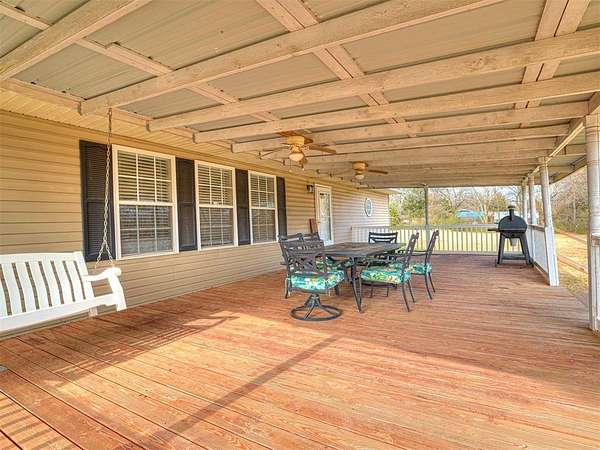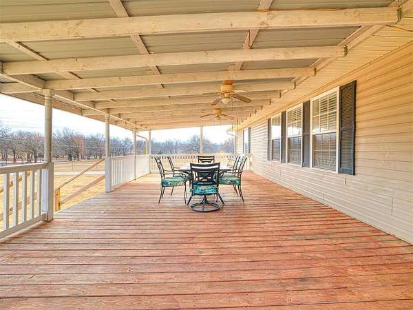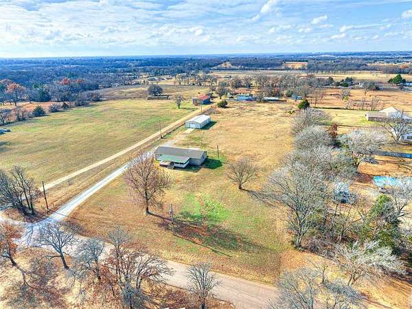 Embrace the tranquility of rural living on this beautifully maintained 3.33-acre property, ideally situated with paved road access in the highly desirable South Rock Creek School District. A long driveway offers a warm welcome and a sense of peaceful seclusion. This charming 3-bedroom, 2-bath home features a spacious living room ideal for gatherings and everyday living. Functional split floor plan with a primary suite on one end of home that includes a jetted tub and shower and 2 walk in closets. On the opposite side, you'll find two additional bedrooms and a full bathroom. Each bedroom has walk in closet. Kitchen has bar seating and eat in dining area open to living room. Step out onto the expansive covered front deck to enjoy your morning coffee while taking in breathtaking sunrises over the rolling countryside. In the evening, unwind on the brand-new back deck and soak in the beauty of Oklahoma's vibrant sunsets. A standout feature of the property is the impressive 30x60 Shop, complete with concrete floors, 220v electric, two garage doors (one electric), and a new steel walk-in door. Whether you need space to store vehicles and recreational toys, want a workshop for hobbies or business, or are looking for the ultimate hangout spot--this versatile space is ready to meet your needs. Recent upgrades, including new vinyl flooring and the newly replaced back deck, provide fresh, inviting living spaces inside and out. Whether you're a first-time buyer or looking to downsize without sacrificing space or serenity, this property offers the perfect combination of comfort, privacy, and scenic beauty. Listing Agent is related to seller.
