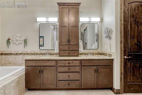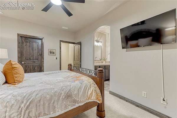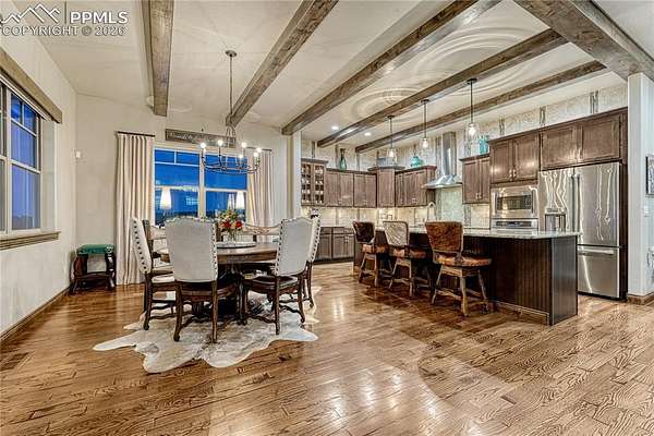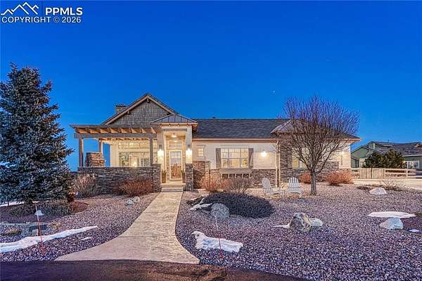 Stunning ranch home with Pikes Peak Views, New Four-Car Garage, and Hot Tub in Walden Preserve! Nestled on 2.5 acres in the coveted Walden Preserve, this exceptional ranch-style home offers the perfect blend of luxury, comfort, and breathtaking views. With soaring wood beams, exquisite craftsmanship, and an expansive open floor plan, this home is designed for both elegance and functionality. The gourmet kitchen is equipped with a new six-burner gas range, top-of-the-line appliances, and ample counter space, perfect for cooking and entertaining. Sliding glass doors lead you to a beautiful outdoor patio featuring a cozy fireplace and pergola - ideal for enjoying Colorado sunsets or hosting guests. The primary bedroom lets you enjoy the ease of a laundry room connecting directly to the primary closet, offering unparalleled convenience and luxury. Another bedroom with Pikes Peak views is also on the main level. The walk out basement features a recreation room, creating the perfect space for entertainment, family time, or relaxation. Unobstructed, panoramic views of Pikes Peak that stretch for miles, offering tranquility and a connection to nature. Two bedrooms and a non conforming bedroom complete the basement area with a jack and jill bathroom and a separate bathroom. Make sure to check out the spacious, stucco-finished garage that has been fully drywalled for a clean, finished look. Perfect for housing multiple vehicles, boats, or offering additional storage. A bonus-Generac generator-peace of mind during Colorado's unpredictable weather, ensuring the home is always ready, no matter the circumstances. With 2.5 acres of space, enjoy privacy, outdoor activities, and the freedom to design your ideal landscape. Located in a highly desirable area with convenient access to outdoor activities and major routes, this home is a rare gem. Whether you're hosting gatherings, relaxing with loved ones, or simply enjoying the views, this property offers a lifestyle like no other.