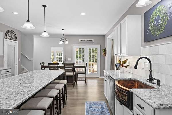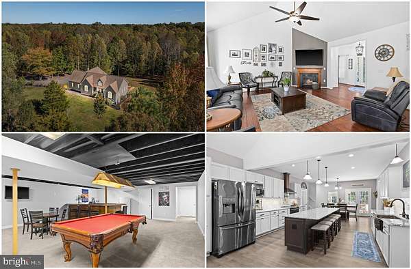Welcome to this exceptional, move-in-ready custom home featuring 4 bedrooms and 4 full bathrooms with over 5,000 finished sq ft, set on 10 private acres. Offering the perfect balance of luxury, functionality, and peaceful country living, this property has been thoughtfully remodeled with high-end finishes throughout, ideal for both everyday living and entertaining. The main level boasts an open gourmet kitchen anchored by a generous center island. The quartzite countertops, hammered copper farmhouse sink, hammered copper beverage sink, matching copper hood over the range, pot filler, custom tile backsplash, wine & coffee bar, and abundant cabinetry are a chef's delight. From the kitchen, the dining room flows seamlessly into the spacious living room with soaring vaulted ceilings, gas fireplace, and rich tobacco wood flooring. The main-level owner's suite features new carpet, a walk-in closet and a spa-inspired ensuite with dual vanities, luxury vinyl plank flooring, linen closet, separate shower, and soaking tub with chandelier. There are two additional bedrooms on the main level both with oversized closets, ceiling fans and fresh paint. The front bedroom has new carpet and high vaulted ceilings, while the rear bedroom has hardwood flooring. Both served by a guest bath with dual marble vanities and a generous linen closet. Upstairs, a spacious loft suite features new carpet, fresh paint, and a private bath with LVP flooring and a freestanding shower. Located on the main floor, the generous laundry room has multiple cabinets, counter space, and a secondary fridge for added convenience. Downstairs the finished, walk-out basement expands the living space with two large recreation rooms, along with a kitchenette including beverage cooler, small fridge, sink, and ample cabinets under a custom-made L-shaped bar top. Additional spaces include a full bathroom, a sound- proofed theater room option, and a spacious unfinished storage room. The pool table, cue rack, billiard light, bar stools, and some gym equipment will convey. The basement could also serve as rental space with its own private entrance. Additionally, the oversized two-car garage has ample woodshop space, built in cabinets, rolling worktable, durable high-end epoxy-sealed floors, 12- foot ceilings, paneled walls, and a built-out storage loft above the parking area. Outdoors enjoy the morning sun while watching deer wander by from the covered back deck, or on the covered front porch while smelling your rose blooms. Additionally, the backyard has a fire pit on a large pea-gravel pad perfect for BBQs and parties while a fenced garden or chicken coop area flanked by flowering wisteria bushes offers space for a quiet side hobby. Much of this beautiful property is wooded, while still offering plenty of lawn to enjoy and is accented in front with white vinyl estate-style fencing. The long driveway provides plenty of parking and includes a bonus canvas covered lawn equipment storage shed, which sits camouflaged off to the side. This one-of-a-kind property offers everything you could want - space, style, and privacy - all within a short drive to Fredericksburg and Dahlgren Naval Base.