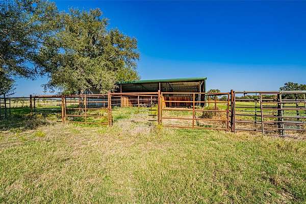 But there's so much more: A seasonal, meandering creek runs through the property, adding charm and peace. Horse lovers will appreciate the 3-stall barn with turnouts, a round pen, and a separate larger pen. The ~10 acres of coastal yield 15-20 bales, and there's a 20' storage container, a pole barn, and a workshop with electricity for all your projects and equipment.