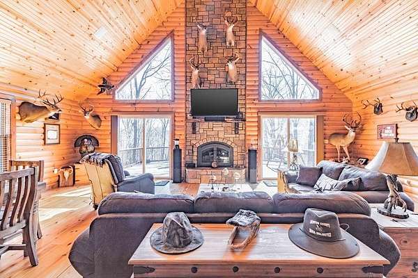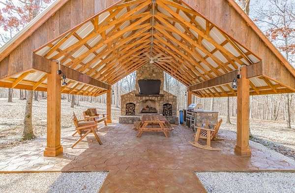 Over 583 acres of hunting paradise, affectionately known as Turkey Ridge. Just 15-20 minutes from Bentonville, you won't find this many acres this close to town anywhere else. Gated entry and paved road access. The 1,848 Square Foot lodge has 3 bedrooms and 3 full baths, a beautiful open kitchen and bar, Meat hanging walk-in cooler, and a full wrap around deck. 16x16 Outdoor Kitchen pavilion with wood fireplace. Covered parking for 2+cars. AND a 30x40 wooden barn/shop. Greater property features several active springs providing year round live water. Expansive road system not usually seen on hunting land - Easily drive a 4WD vehicle throughout the property (see attached map and photos). Lots of frontage on Kelly Pond Rd.