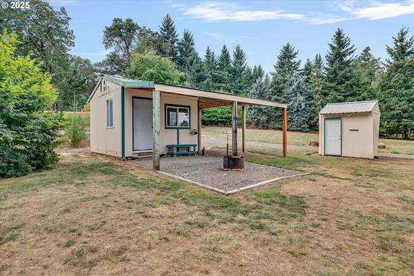 Nestled on nearly 3 acres, this welcoming ranch home has 3 bedrooms and a full bathroom. Inside features include a functional floorplan with natural light and a cozy wood burning stove for the upcoming cooler days. Outside the property shines with numerous outbuildings including a large shop (with a separate meter and 220 - great for storage, auto work, hobby or a small business) and a separate studio (power, heat, water-available at outside spigot and is ideal for a home office, creative space, workout area or ???). There is also a small loafing shed or poultry coup to shelter smaller animals. A seasonal creek winds through the front pasture with clusters of mature trees along with some fruit trees and bushes (apple, cherry, blueberry, blackberry) creating a private and shaded outdoor paradise. Home needs some light work, but property and location can't be beat, it offers a great balance of space and privacy with a quick drive to nearby stores and outdoor activities. This property has a little of everything and is sure to impress.