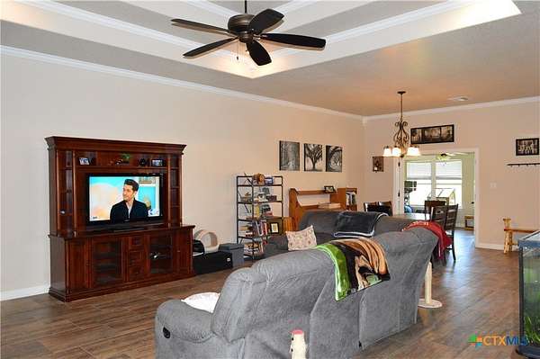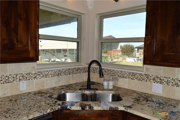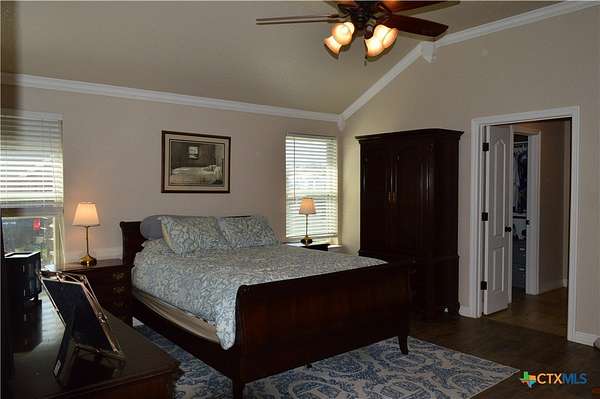 RARE FIND PROPERTY THAT BORDERS AND HAS ACCESS TO THE LAMPASAS RIVER, 2563 SQUARE FEET HOME BUILT IN 2018 ON A 1.509 ACRE FLAT LOT IN SOUGHT AFTER LAMPASAS RIVER PLACE IN KEMPNER, FOUR SIDES BRICK WITH FOUR BEDROOMS, TWO FULL BATHS PLUS A GUEST HALF BATH, SUNROOM/FLEX ROOM, THREE CAR GARAGE, NO NEIGHBORS BEHIND The home features high ceilings, neutral tones, and the entry, family and dining areas, and the master bedroom have crown molding. The spacious chef's dream kitchen is brightly lit with recessed lighting, under-cabinet lighting, and pendant lighting and features abundant granite countertops with breakfast bar and a walk-in pantry. The stainless appliances include a built-in microwave, built-in oven, glass cooktop, dishwasher, and the freezer-on the bottom refrigerator is included. The home offers a split floor plan, allowing peace and quiet for the owners. The master bedroom has a high ceiling with ceiling fan and crown molding, two walk-in closets, and a romantic private bath. The master bath has two vanities with granite countertops and sinks, an oval soaker tub, walk-through shower with two seats and tile surround, and a private water closet with window that opens. All bedrooms have walk-in closets. The second full bath has a tub/shower and two sinks in granite countertop. Outdoors you will find a concrete driveway leading to the three car garage that has two LiftMaster openers, window for natural light, a sink, and storage. Enjoy the back yard from the covered patio that has an attached uncovered area for the grill. The back yard has access to the Lampasas River and has fencing and cross fencing. The 21' X 18' storage building with garage door is included, and also the 20' X 18' run-in shed. Utilities are provided by Hamilton County Electric Coop, Kempner Water Supply, and NextLink high speed internet. Please visit the virtual tour for videos of this rare find property.
