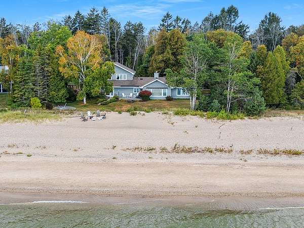 Est $7,853/moWelcome to your waterfront retreat! With 219 feet of sandy beach this home offers exceptional space and serenity. Built with care and quality, it features beautiful custom woodwork and thoughtful details at every turn. Gourmet kitchen with SS appliances including a Wolf range, Sub Zero refrigerator and full size Wine Chiller. The main-floor owner's suite feels like a spa, complete with heated floors, a walk-in shower, a jetted tub, and sweeping water views. Upstairs, enjoy movie nights in the theatre room or gather around the wet bar for entertaining. Stunning shoreline and high-end finishes make this a perfect blend of luxury and relaxed lakeside living. Property being sold with vacant lot 0060003262632M2. See also MLS 144769