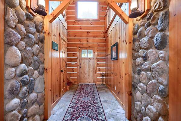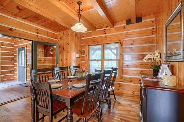 Exceptional 4 bedroom, 3.5 bath log home on 33 plus acres located the heart of the Hocking Hills. Currently being utilized as a short term rental that produced over 90K in gross rental revenue in 2025. Features include soaring ceilings, two stone wood-burning fireplaces, first floor primary suite with stand-alone soaking tub, and private screen room. The upper sleeping loft includes a children's play nook. Expansive gourmet kitchen with premium JennAir appliances. The finished walk-out is ideal for additional entertaining plus two private bedrooms and two full baths. Step outside to a nature lover's paradise with a serene pond, private hot tub, whole-house generator, and a 30 x 40 pole barn complete with concrete floors and horse stalls. A unique combination that is appealing to individuals looking for a primary or secondary home, or a nature-focused short-term rental property in one of Ohio's most sought-after destinations.