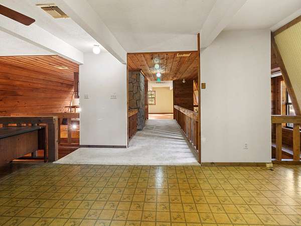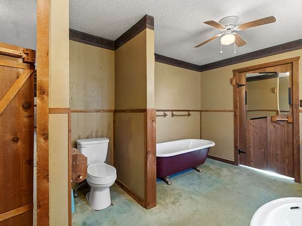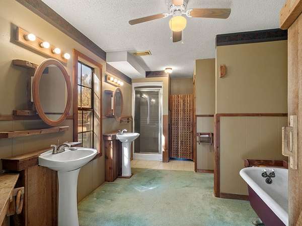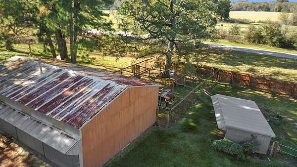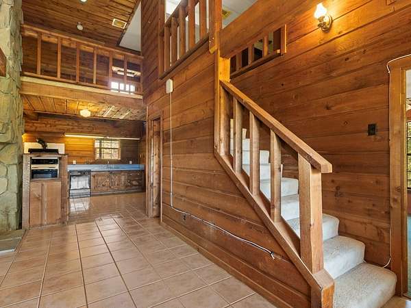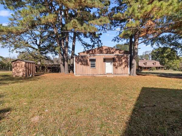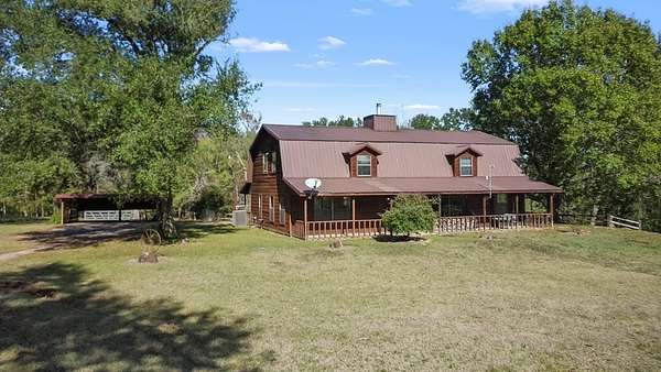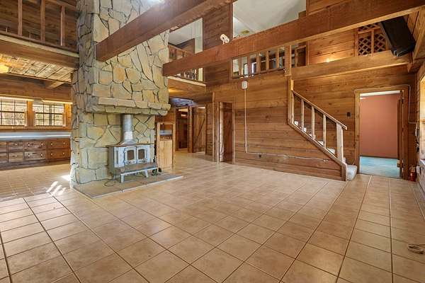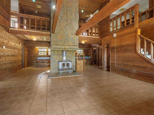 Discover the perfect blend of rustic charm & modern comfort on this beautiful 17-acre rural property featuring a classic log-style home, scenic acreage & versatile outbuildings. Tucked away in nature with a small pond at the back of the property, this home is ideal for family living, entertaining, or a peaceful country retreat. The main home welcomes you with an open-concept layout, soaring ceiling & a striking wood-burning rock fireplace that serves as the heart of the living space. The primary bedroom & bathroom are conveniently located downstairs, along with an additional bedroom & full bath. Upstairs, two open loft rooms--connected by a catwalk--provide flexible spaces perfect for an office, gamer room, playroom, or hobby area. Outside, the land is fully fenced with multiple outbuildings suitable for animals or storage. A large 1,600+ sq ft workshop/garage offers endless possibilities for projects, equipment, or business use. Also included is a second home, a 1,602 sq ft 1996 mobile (16x76), great for extended family, guests, rental income, or a potential property caretaker.Privacy, space, functionality and it just needs your personal touch & updated designs to shine.