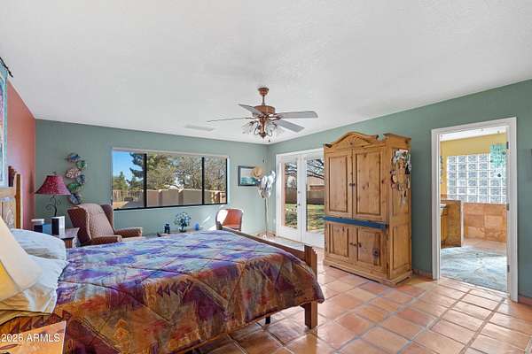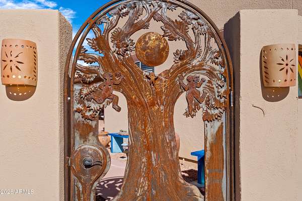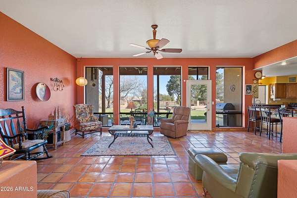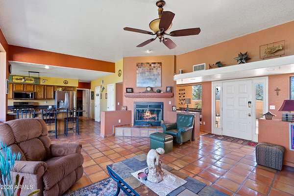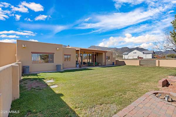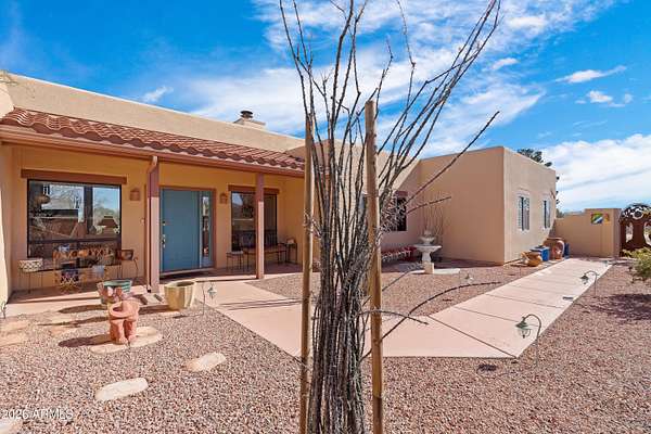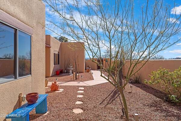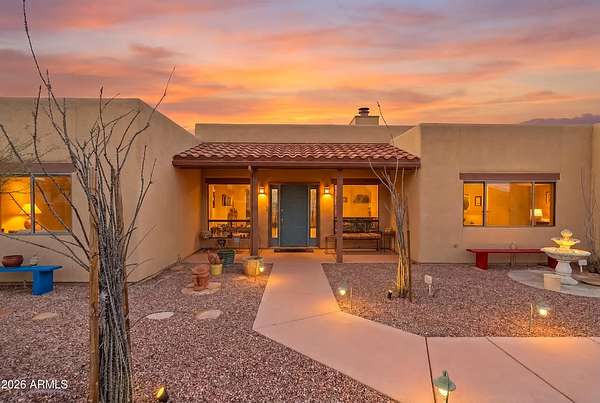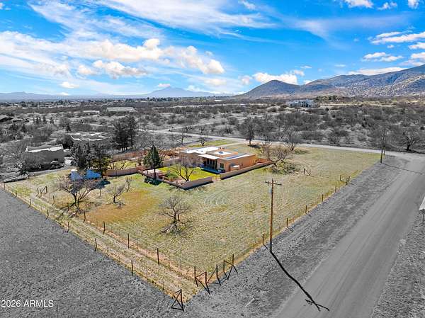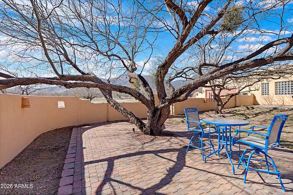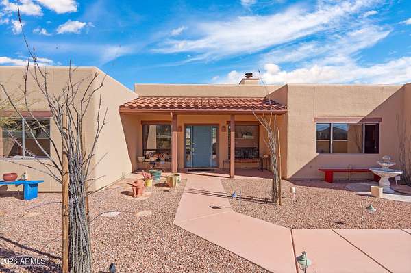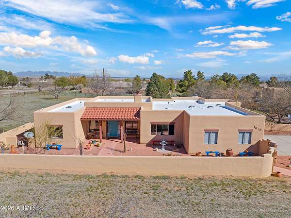 *RARE Opportunity in Highly Desired Location* Santa Fe-style charm meets serene desert living! This 2,065 sqft 3BD/2BA home sits on 2+ acres in a highly desirable area near Ramsey Canyon, offering easy access to walking and biking trails while still close to town. Enjoy stunning mountain views through oversized windows, complemented by Saltillo tile flooring and a cozy fireplace. The property features three private courtyards, each with stucco block walls, paver patios, irrigation, and custom landscape lighting--perfect for relaxing or entertaining. Surrounded by recent multi-million dollar new home builds, this is a rare opportunity with exceptional location and value! Roof recoated (2026), home's exterior painted (2025) and 3,000 gallon rain water basin conveys!