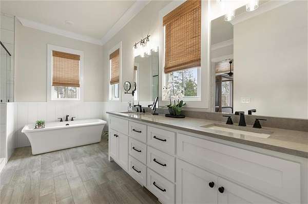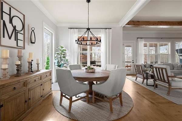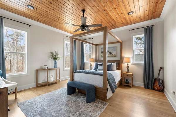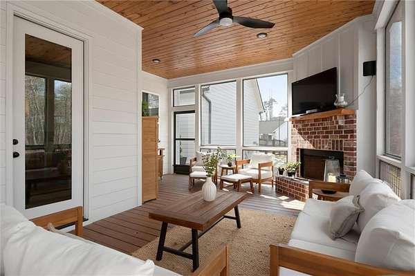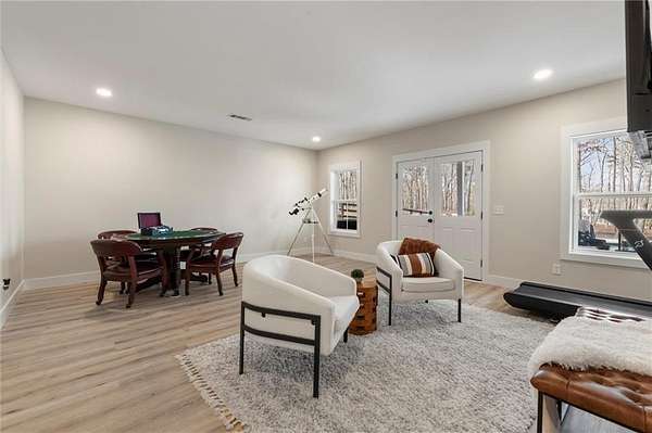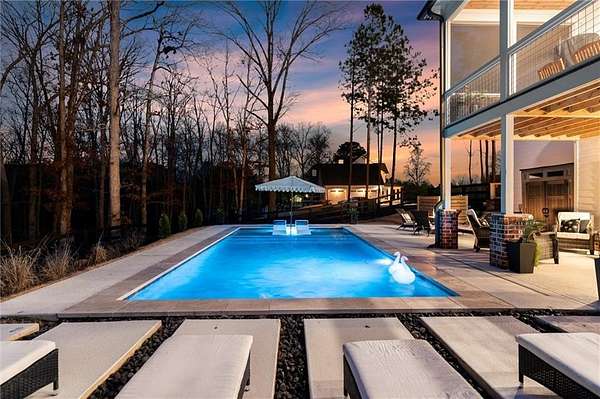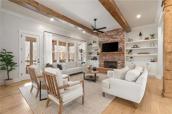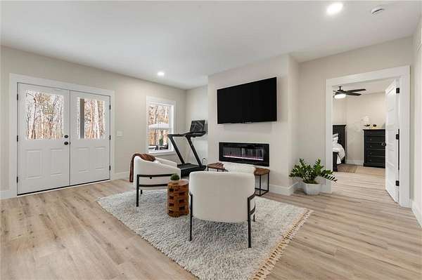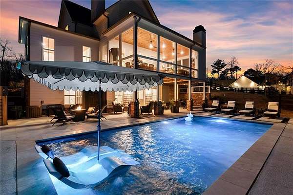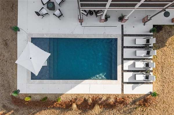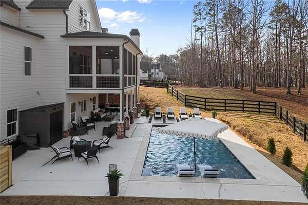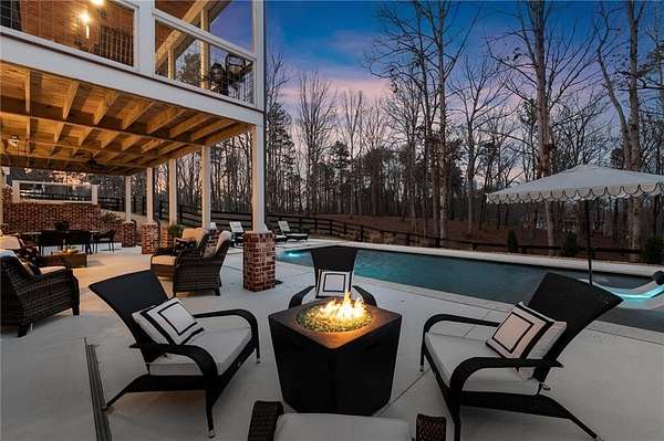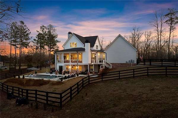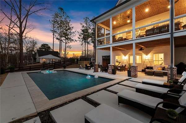 Welcome to this nearly new 4 Bedroom/ 4.5 Bath + Flex Room, beautiful farmhouse in sought after Ball Ground! The rolling hills, pastoral settings and landscape on your drive home are absolutely breathtaking! Set on two acres with sitting porches all the way around this home features the Primary Suite on Main, 2 BR/ 2 BA Upstairs + Flex Room, 1 BR/ 1 BA Terrace Level. Enjoy a large two acre lot with a 4-board and wire fenced backyard, this custom built home also features a 3-car side entry garage, hardwood floors throughout the main level, gourmet Kitchen, Family Room with brick fireplace, screened in porch with fireplace overlooking the pool, grilling deck, Primary Suite on main with spa bath, and so much more. Walk upstairs to two en-suite bedrooms and an oversized flex room with closet perfect for another bedroom, playroom, or office. The newly finished Terrace level features a family room with fireplace, a bedroom, full bath, kitchenette, separate office, and pool/rec room. This space walks right out onto the pool deck with the convenience of another large covered porch and plentiful pool decking with plenty of space to enjoy friends, family gatherings or a quiet afternoon reading a book by your very own pool. Where the mountains are in the distance, and the shopping and restaurants, are a short drive, 1675 Hornage Road is nearly new with impeccable maintenance and offers the best of both worlds in an already built home that is truly turn key!