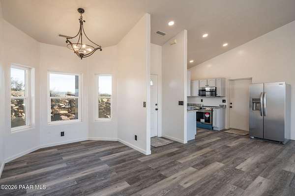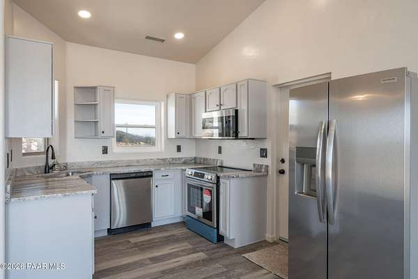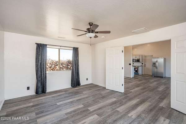 Stunning Hilltop Getaway with Unbeatable Arizona Views!Discover this move-in-ready gem on 2.89 fully fenced acres in the desired Henderson Valley Ranch. Enjoy unlimited 360-degree panoramic views of Dewey, Prescott Valley, Bradshaw Mountains, and what may be the best Arizona sunset money can buy--fiery skies over the high-desert valleys from your elevated perch.Totally remodeled & energy-efficient: fresh interior/exterior paint, new roof, solar system, custom flooring, granite countertops in the kitchen, new stainless steel appliances, whole-house HVAC, well with storage tank for reliable water, and high-speed internet available.Spacious 4 bed/2 bath layout (approx. 2,244 sq ft) plus a versatile 14x24 ft (336 sq ft) permitted bonus room with separate entrance--perfect for home office, guest suite, gym, studio, media room, or in-law quarters. 2-car garage with extra storage/tools space, plus abundant parking for RVs, boats, toys, barns, stables, or outbuildings. Rural setting with endless expansion potential in this peaceful, view-rich community.Don't miss these breathtaking day/night vistas! Ideal for those seeking privacy, self-sufficiency, and iconic Arizona sunsets.