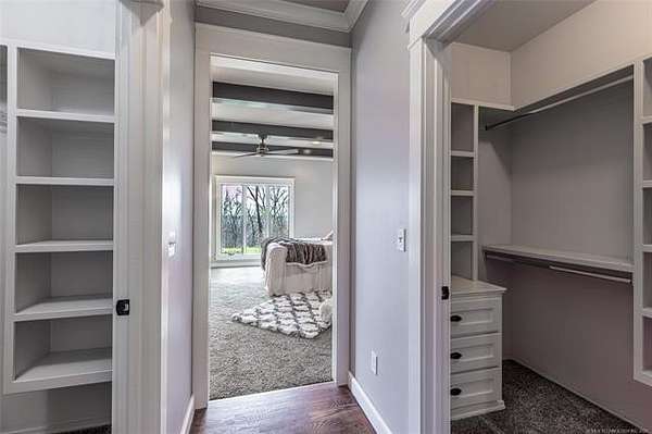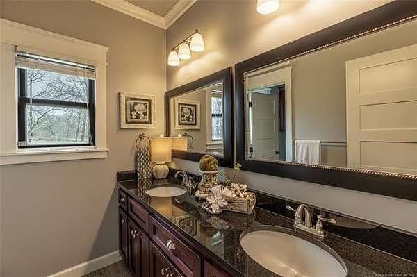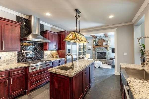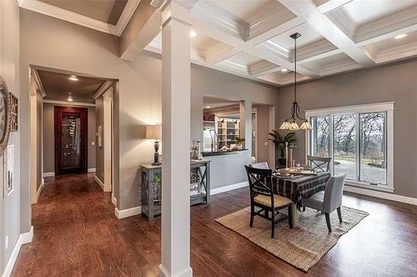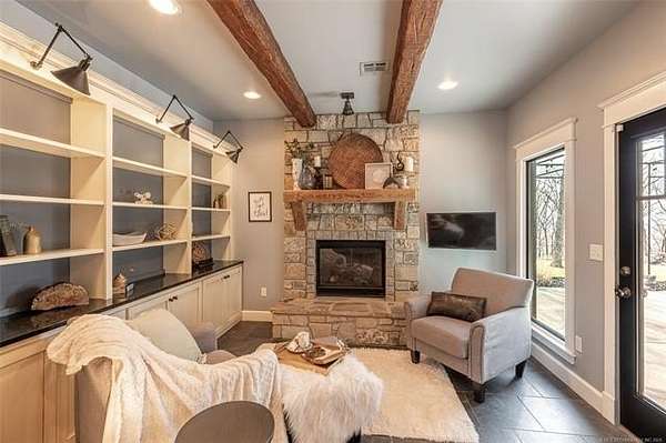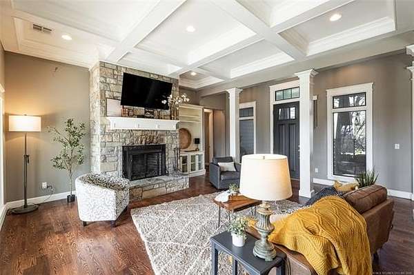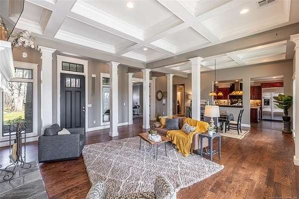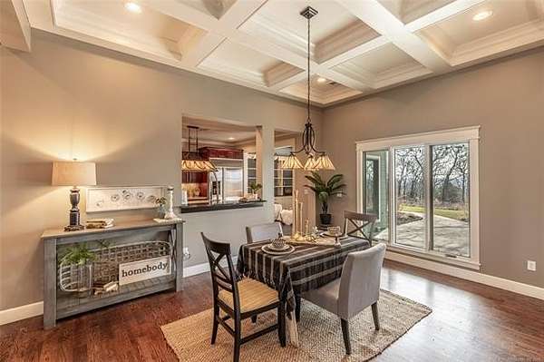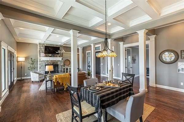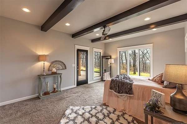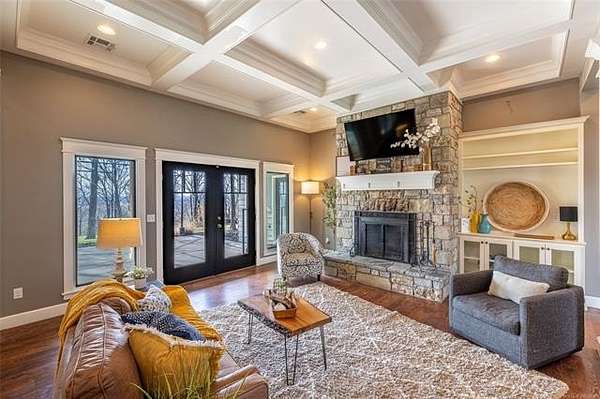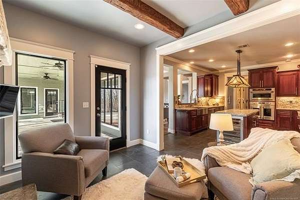 This beautifully custom-built Craftsman home is ready for you - and everything that comes with you. Perfectly positioned on the property, it offers both privacy and stunning curb appeal. Meticulously maintained, this home is filled with character, warmth, and thoughtful upgrades throughout. One of its standout features is the inviting hearth room - a detail so many buyers love. The craftsmanship is exceptional, especially in the coffered ceiling, where the trim work is truly a showpiece. Windows fill the home with natural light and highlight the beautiful finishes and open, flowing floor plan. The kitchen and living spaces blend seamlessly, making this home ideal for both everyday living and entertaining. And for the wine enthusiast, there is a wine refrigerator in the kitchen and a full-size wine cabinet in the hallway that definitely makes a statement. There's also some incredible bonuses on the property: an approximate 1,000 sq. ft. detached space complete with a bathroom and kitchen, a carport with electric, and a small quarry lake with a boat ramp great for private fishing. Whether you need an additional office, workshop, studio, guest space, or something entirely your own, the possibilities are endless here.